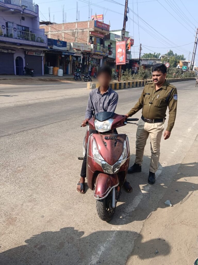 नाबालिग छात्रों द्वारा दोपहिया वाहन चलाने के विरुद्ध कोतवाली अनूपपुर पुलिस की सख्त कार्रवाई