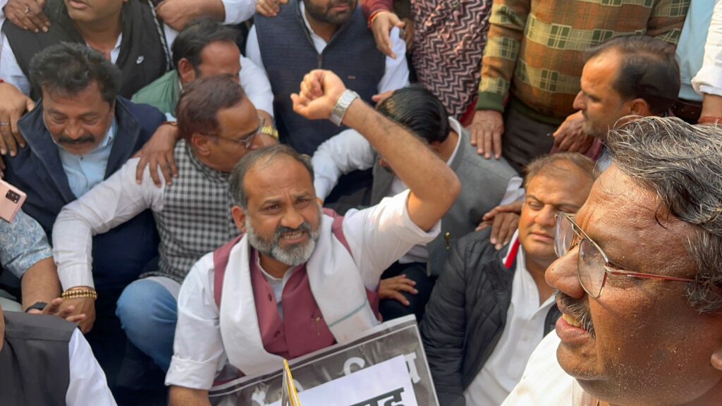 गृह मंत्री अमित शाह ने संसद में बाबा साहेब का घोर अपमान किया है। कांग्रेस के सांसद राहुल गांधी अपने समूचे सांसदों के साथ कई दिनों से इस संविधान विरोधी सरकार के खिलाफ प्रदर्शन कर रहे थे, लेकिन इस के लोकतंत्र में, जिस संसद को मंदिर माना जाता है, जब उसमें जनता जनार्दन से चुने हुए सांसदों के द्वारा इस तरह की भाषा का प्रयोग संविधान के रचयिता बाबासाहेब भीमराव अंबेडकर एवं उनके द्वारा रचित भारत के संविधान का अपमान किया जाता है वह देश के लिए दुर्भाग्यपूर्ण हैं , क्योंकि इस देश का गृहमंत्री जिस जगह पर खड़े होकर इस तरह की शब्दावली का प्रयोग कर रहा है, उसे वहां पर खड़े होने का अधिकार भी इसी संविधान ने दिया है, जिस तरह से इस देश ने देखा शांतिपूर्वक संसद के अंदर प्रवेश कर रहे कांग्रेस के सांसदों से भाजपा के द्वारा जबरन धक्का मुक्की करी भाजपा शासन सीधे-सीधे गुंडागर्दी करने पर अमादा है, इसके पश्चात भी जब वह लोकतंत्र में राहुल गांधी की आवाज को दबाने में असमर्थ हुए तो उन्होंने इस घटना की पूरी जिम्मेदारी राहुल गांधी के कंधों में डालने की प्लानिंग करी, राहुल गांधी जी के खिलाफ झूठी FIR दर्ज कराई गई, जिसके विरोध में आज कांग्रेस के राष्ट्रीय सचिव एवं मध्य प्रदेश सह प्रभारी चंदन यादव के नेतृत्व में जिला मुख्यालय के सामने इस देश के गृहमंत्री अमित शाह के पोस्टर जलाए गए।