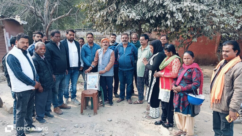 ओबरा सोनभद्र। भारतीय संविदा श्रमिक संगठन के कार्यकर्ताओं ने रविवार को गांधी मैदान स्थित कार्यकाल पर एक शोक सभा का आयोजन किया। जिसमें कामगार युवा नेता सुनील जायसवाल के चित्र पर माल्यार्पण कर श्रद्धांजलि अर्पित की गई। संगठन के अध्यक्ष मणिशंकर पाठक ने बताया कि विगत दिनों संगठन के कर्मठ युवा कार्यकर्ता सुनील जायसवाल के आकस्मिक निधन हो जाने की सूचना मिलने पर शोक व्यक्त कर मृतात्मा के प्रति श्रद्धांजलि अर्पित की। संगठन के उपाध्यक्ष रणजीत तिवारी एवं महामंत्री कृष्ण कुमार पाठक ने संयुक्त रूप से कहा कि श्री जायसवाल का संगठन से लगाव और सक्रियता सदैव संगठन कार्यकर्ता के लिए स्मरणीय रहेगा और इस अपूरणीय क्षति की भरपाई कभी नहीं की जा सकती। शोक सभा के दौरान संगठन के आलोक पांडे, करामात अली, युवा नेता श्याम जी मिश्रा, परवेज अहमद, जय शुक्ला, गुड़िया, राजवंती देवी, रेखा, तारकेश्वर शुक्ला, राजू भारती, विवेक कुमार इत्यादि लोग मौजूद रहे।