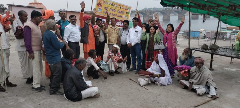 ओंकारेश्वर – धार्मिक क्षेत्र तथा नर्मदा के घाटो पर दान पुण्य करने का कई गुना लाभ मिलता है कड़कती ठंड में नर्मदा परिक्रमा कर रहे परिक्रमा वासियों एवं जरूरतमंदों को प्रतिवर्ष अनुसार इस वर्ष भी बांगो लोक भारती खंडवा के पदाधिकारी ने नर्मदा के तट मोरटक्का पहुंचकर