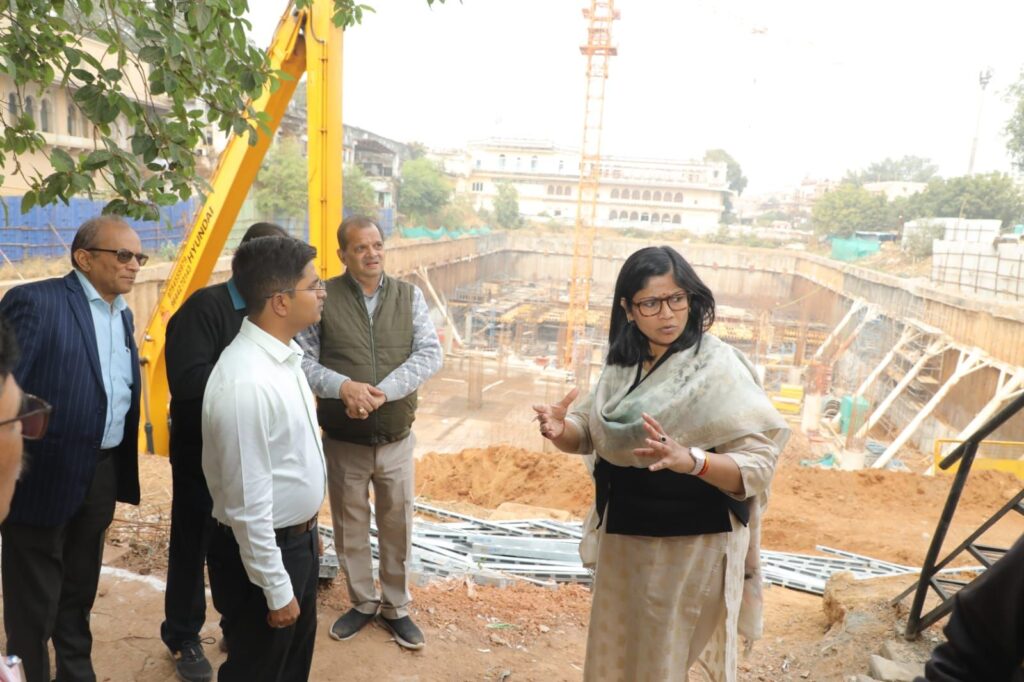 ग्वालियर 26 दिसम्बर 2024/ महाराज बाड़े पर गोरखी परिसर में निर्माणाधीन मल्टी लेवल पार्किंग के काम में तेजी लाएँ। साथ ही यह सुनिश्चित करें कि अगले 4 माह में इसका काम पूरा हो जाए। महाराज बाड़े की यातायात व्यवस्था को बेहतर बनाने के लिये यह पार्किंग अत्यंत जरूरी है। इसलिए इस काम में कोई ढ़िलाई न हो। इस आशय के निर्देश कलेक्टर श्रीमती रुचिका चौहान ने मल्टी लेवल पार्किंग के निरीक्षण के दौरान स्मार्ट सिटी के अधिकारियों को दिए। इस अवसर पर नगर निगम आयुक्त एवं स्मार्ट सिटी के सीईओ श्री अमन वैष्णव भी उनके साथ थे।