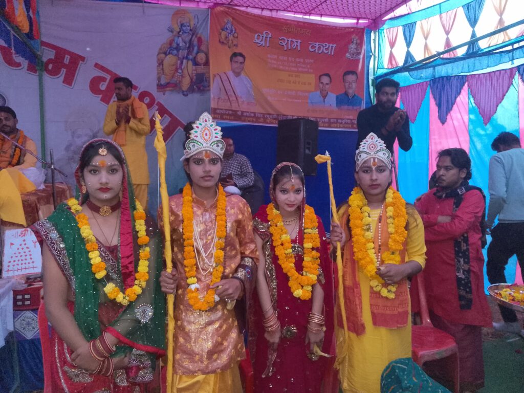 नईसराय :- नई सराय तहसील के अंतर्गत ग्राम खजुरिया में हनुमान मंदिर पर चल रही संगीत मय श्री राम कथा के छठवें दिन वृंदावन धाम से पधारे कथावाचक हरिओम शास्त्री ने राम विवाह की कथा सुनाते हए कहा विश्वामित्र की यज्ञ की रक्षा करने के बाद अयोध्या नरेश राजा दशरथ के पुत्र भगवान राम और लक्ष्मण जनकपुर में सीता स्वयंवर देखने पहुंच जाते हैं गुरु की आज्ञा से राम और लक्ष्मण दोनों भाई पुष्प वाटिका में फूल चुनने के लिए जाते हैं जहां भगवान राम और गौरी पूजन करने आई माता सीता एक दूसरे को देखते हैं गौरी पूजन के दौरान माता सीता भगवान राम को वर रूप में मान लेती हैं दूसरे दिन धनुष यज्ञ में देश-विदेश के राजा एकत्रित होते हैं मंत्री राजा जनक की घोषणा को सुनाते हुए कहते हैं कि जो भी राजा भगवान शंकर के धनुष को तोड़ेगा माता सीता उसे वर रूप में वरण करेंगी घोषणा सुनकर देश विदेश के राजा अपनी समस्त शक्ति धनुष को तोड़ने के लिए लगा देते हैं लेकिन धनुष का खंडन तो दूर उसे तिल भर हिला भी नहीं पाते यह सुनकर भगवान राम के भाई लक्ष्मण को क्रोध आ जाता है इसी दौरान भगवान राम विश्वामित्र के आदेश का पालन करते हुए भगवान शंकर के धनुष का खंडन कर देते हैं और माता सीता भगवान राम को वरमाला पहना देती हैं धनुष यज्ञ और राम विवाह की बारात में श्रद्धालु जमकर नाचे यह कथा प्रतिदिन दोपहर 2:00 बजे से 5:00 बजे तक की जा रही है कथा का आयोजन अशोक रघुवंशी नेताजी एवं महेंद्र रघुवंशी परिवार द्वारा कराई जा रही है बड़ी संख्या में शद्धालु श्री राम कथा सुनने के लिए पहुंच रहे हैं