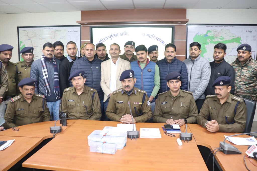 सराहनीय भूमिका:- थाना प्रभारी क्राईम ब्रांच निरीक्षक हितेन्द्र सिंह राठौर, थाना प्रभारी बहोड़ापुर निरीक्षक जितेन्द्र सिंह तोमर, क्राईम ब्रांच टीम- उनि. शैलेन्द्र सिंह गुर्जर, उनि. राजीव सोलंकी, उनि रजनी रघुवंशी, प्रआर राजीव शुक्ला, प्रआर भगवती सोलंकी, प्रआर नरवीर राणा, प्र.आर0. हरेन्द्र गुर्जर, आर. अरूण पवैया, आर. श्रीकृष्ण तोमर, आर. देवेश कुमार, आर. प्रमोद शर्मा, आर. रणवीर यादव, आर. जसवीर गुर्जर, आर. सुमित शर्मा, आर. राघवेन्द्र भदौरिया, आर. योगेन्द्र तोमर, आर रामवीर सगर, प्र.आर. मक्खन सिंह, आर. अंतरेश शर्मा, आर. श्याम शर्मा, आर. राहुल दुबे, आर. अभिषेक तोमर, प्रआर. जितेन्द्र सिकरवार(थाना माधौगंज), प्र.आर. धर्मेन्द्र सिंह, आर. लोकेन्द्र, आर. हेमंत बाथम, आर. मनोज भारद्वाज, आर. अजय सिंह राठौर, आर. जितेन्द्र गुर्जर, आर. कपिल पाठक, आर. सोनू प्रजापति, आर. प्रदीप यादव, गनमेन आर.धर्मवीर सिंह थाना बहोड़ापुर टीम- उनि. यादवेन्द्र उपाध्याय, उप निरी. विवेक तोमर, प्र.आर. धर्मेन्द्र तोमर, प्र.आर. जसविंदर, आर. रूस्तम गुर्जर, आर. विजय गुर्जर, आर. गिर्राज शर्मा, आर. अंकित तोमर, आर. तारा सिंह, आर. नरेश, आर. राजवीर की सराहनीय भूमिका रही।