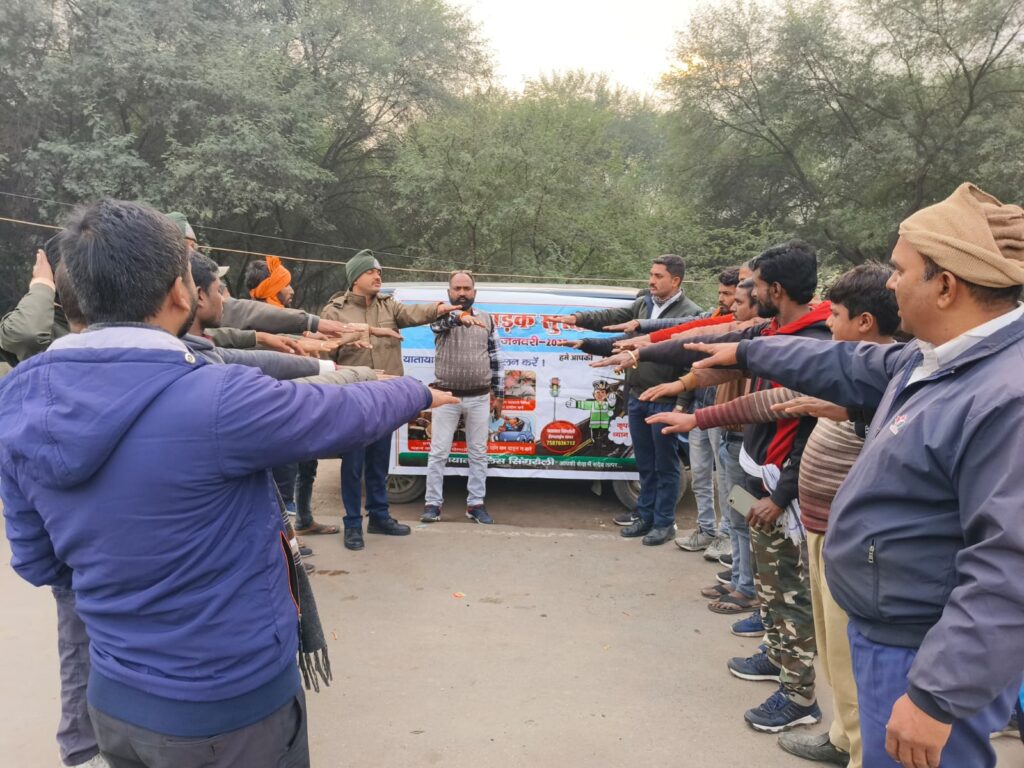 कार्यवाही का विवरण – पुलिस मुख्यालय भोपाल द्वारा चलाये जा रहें दिनांक 01.01.2025 से 31.01.2025 तक सड़क सुरक्षा माह के अतंर्गत विशेष जागरुकता अभियान में आज दिनांक 16.01.2025 को यातायात पुलिस सिंगरौली के द्वारा विभिन्न स्थानों में जाकर विशेष जागरुकता अभियान के दौरान पंपलेट वितरण, वाहनों में स्टीकर लगाना एवं हेलमेट सीटबेल्ट लगाने हेतु उद्योधन देकर यातायात नियमों का पालन किये जाने हेतु अपील की गई। एवं हेलमेट एवं सीटबेल्ट न लगाने से होने वाली दुर्घटनाओं के बारे में समझाईस दी गई है। साथ ही लोगों को समझाईस दी गई की अधिकांश सड़क दुर्घटनायें तेज रफ्तार वाहन चलानें, गलत दिशा में वाहन चलाने एवं शराब पीकर वाहन चलानें से होती है। यातायात पुलिस द्वारा इस संबंध में सभी आमजन से शपथ भी दिलाई गई कि “बिना हेलमेट दो पहिया वाहन न चलाएं सीट बेल्ट लगाकर ही चार पहिया वाहन चलाएं शराब पीकर वाहन ना चलाएं यातायात नियमों का पालन करें” ।