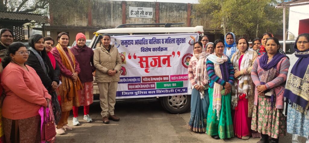 महिला सुरक्षा शाखा सिंगरौली के द्वारा आज दिनांक16.01.2025 को माजन मोड स्थित महिला बाल विकास के कार्यालय मे पुलिस मुख्यालय भोपाल एवं श्रीमान पुलिस अधीक्षक महोदय श्री मनीष खत्री के निर्देश पर समुदायिक पुलिसिंग योजना के अंतर्गत चलाएं जा रहे विशेष जागरूकता कार्यक्रम सृजन का का आयोजन किया गया।