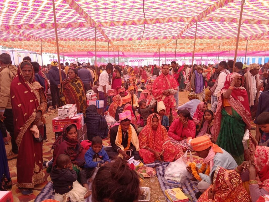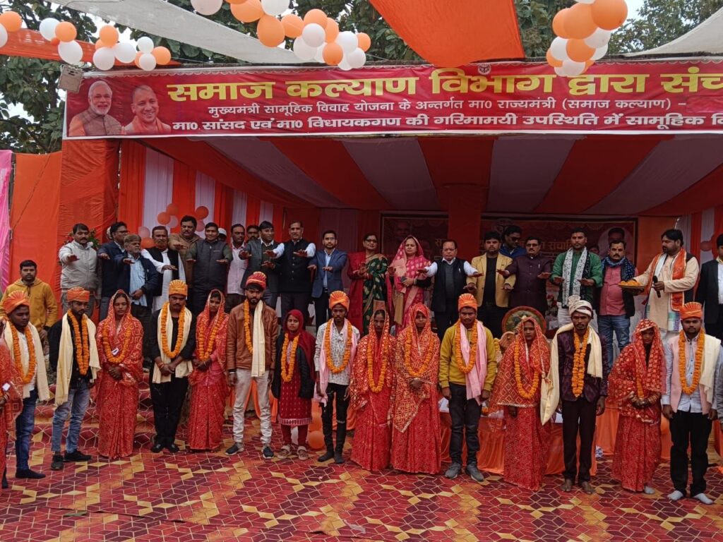 दुद्धी सोनभद्र। भाऊ राव देवरस राजकीय स्नातकोत्तर महाविद्यालय परिसर में दुद्धी विकासखंड, म्योरपुर विकासखंड व बभनी विकासखंड आदि से 253 जोड़े समाज कल्याण विभाग द्वारा आयोजित उत्तर प्रदेश मुख्यमंत्री सामूहिक विवाह योजना अंतर्गत मांगलिक परिणय सूत्र में शुक्रवार को बंधे। 251 मांगलिक हिंदू जोड़े पुरोहित द्वारा जबकि 2 जोड़े मुस्लिम सम्प्रदाय का निकाह भी काजी / मौलवी द्वारा उल्लास पूर्ण माहौल में ढोल नगाड़े गाजे बजे के बीच संपन्न कराया गया। कुछ जोड़े बाद में पहुंचे उनका विवाह भी संपन्न कराया गया। शासन द्वारा इस मांगलिक कार्यक्रम हेतु 51 हजार रूपये निर्गत किए जाते है जिसमें कन्या के खाते में 35 हजार रूपये,10 हजार रूपये गृहस्थ का सामान बर्तन आदि जबकि 6 हजार रूपये भोजन टेंट फूलमाला सजावट आदि हेतु आवंटित किए जाते है। इस पावन पल के साक्षी दुद्धी ब्लॉक प्रमुख रंजना चौधरी, नगर पंचायत दुद्धी अध्यक्ष कमलेश मोहन, जिला पंचायत सदस्य म्योरपुर सुषमा सिंह गौंड, दुद्धी भाजपा मंडल अध्यक्ष दीपक शाह, मंडल महामंत्री प्रेम नारायण सिंह, नगर पंचायत दुद्धी स्वच्छता मिशन ब्रांड एंबेसडर जितेन्द्र कुमार चन्द्रवंशी, भाजपा जिला प्रतिनिधि शेषमणि चौबे,जिला समाज कल्याण अधिकारी रमाशंकर यादव,खंड विकास अधिकारी दुद्धी विशाल कुमार चौरसिया, खंड विकास अधिकारी बभनी अजीत कुमार यादव की उपस्थिति में समाज कल्याण विभाग द्वारा संचालित उत्तर प्रदेश मुख्यमंत्री सामूहिक विवाह योजना भाऊराव देवरस राजकीय स्नातकोत्तर महाविद्यालय दुद्धी सोनभद्र परिसर में धर्माचार्य ब्राह्मण, मौलवी द्वारा धार्मिक परंपरा अनुसार विवाह वैदिक मंत्र उच्चारण के बीच संपादित कराया गया । वर वधु को पुष्प वर्षाकर सुखमय दांपत्य जीवन का आशीर्वाद अतिथियों द्वारा दिया गया। कार्यक्रम का शुभारंभ गणेश चौथ के पावन अवसर पर गणेश भगवान की प्रतिमा का पर धूप – दीप नैवेद्य, पुष्प के सानिध्य में पूजन कर कार्यक्रम का शुभारंभ किया गया। कार्यक्रम का संचालन अविनाश कुमार गुप्ता द्वारा किया गया।