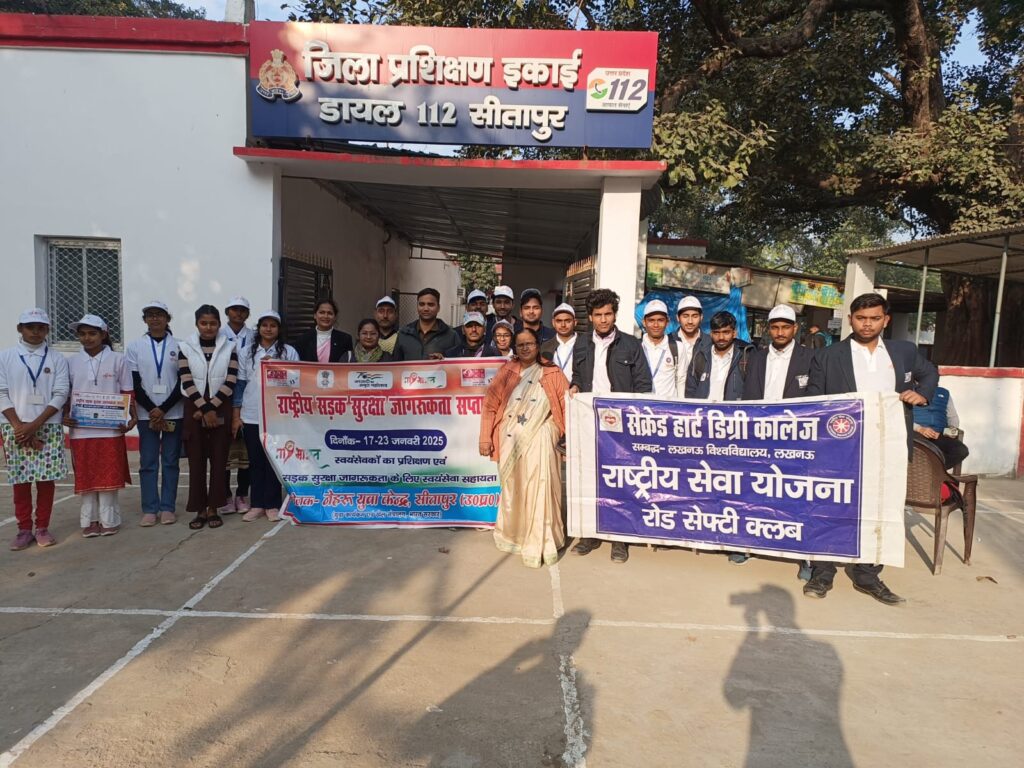 सीतापुर ]मेरा युवा भारत अंतर्गत नेहरू युवा केंद्र सीतापुर, राष्ट्रीय सेवा योजना सेक्रेड हार्ड डिग्री कॉलेज एवं आरo एमo पी o कॉलेज के संयुक्त तत्वावधान में सड़क सुरक्षा सप्ताह कार्यक्रम का शुभारम्भ कार्यालय नेहरू युवा केंद्र सीतापुर में किया गया जिसके अंतर्गत जागरूकता पोस्टर्स का विमोचन भी किया गया ।कार्यक्रम को सम्बोधित करते हुए जिला युवा अधिकारी श्रीमती रोशनी पटवा ने उपस्थित युवाओं को आगामी 23 जनवरी2025 यानी एक सप्ताह तक शहर के मुख्य स्थानों पर निरन्तर सड़क सुरक्षा को लेकर आमजन के बीच जागरूकता के लिये प्रेरित किया व सभी को कार्यक्रम के उद्देश्यों से अवगत कराया। कार्यक्रम में उपस्थित यातयात पुलिस से टी एस आई श्री प्रेम चंद्र व ने कहा कि जनपद सीतापुर गौरवशाली जनपद है और हम सब को सामूहिक प्रयास से जनपद को दुर्घटना मुक्त बनाना हैं, हम पंच मंत्र का उपयोग करके सड़क दुर्घटनाओं को रोक सकते हैं जिसमें हेलमेट और सीटबेल्ट का उपयोग करने के साथ साथ ड्राइविंग के समय मोबाइल का उपयोग बिल्कुल न करें और नशा करके वाहन न चलाएं साथ ही ओवर स्पीड में वाहन बिल्कुल न चलाएं और अच्छा मददगार बनने के लिये भी युवाओं को प्रेरित किया। यातायात विभाग से श्री ऋषभ जी ने कहा कि सड़क सुरक्षा आज का सबसे गंभीर विषय है, हम छोटी-छोटी सावधानी बरत कर बड़ी दूर्घटनाओ को टाल सकते हैं। सड़क सुरक्षा के मांनको को हम अपनी आदत बनाएं। एन o एस o एस o कोऑर्डिनेटर डॉक्टर शशि कला की उपस्थिति में