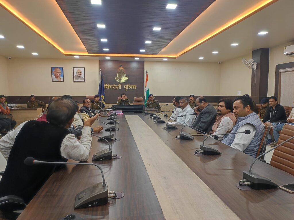 बैठक में नगर पुलिस अधीक्षक विंध्यनगर श्री पी.एस. परस्ते, थाना प्रभारी बैढ़न निरीक्षक श्री अशोक सिंह परिहार, थाना प्रभारी नवानगर निरीक्षक श्रीमती अर्चना दिवेदी, चौकी प्रभारी जयंत उप निरीक्षक श्री सुधाकर सिंह परिहार, उप निरीक्षक श्री अमन वर्मा (थाना नवानगर) तथा सराफा व्यापारी संघ के अध्यक्ष एवं अन्य सदस्य उपस्थित रहे।