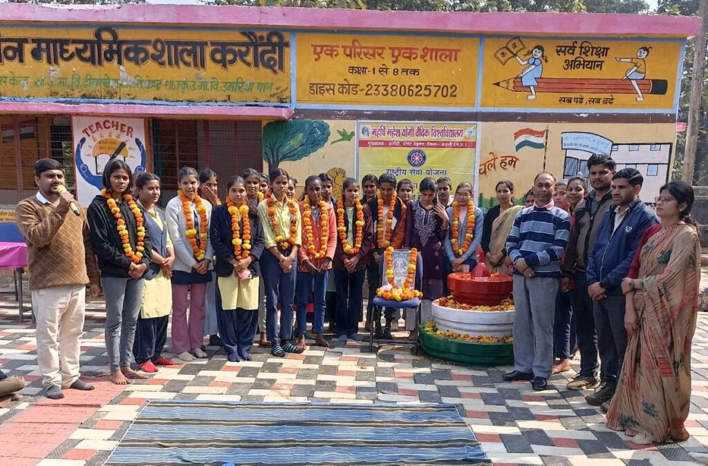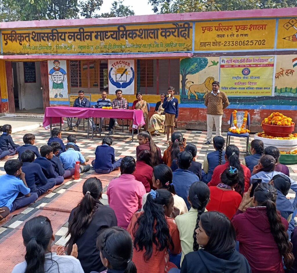 बालिकाओं के सम्मान में डॉ. मोनिका वर्मा सहायक प्राध्यापिका समाजिक विज्ञान विभाग, श्रीमती पार्वती पटेल शिक्षिका शासकीय नवीन माध्यमिक शाला करौंदी और विश्वविद्यालय की छात्राओं द्वारा शासकीय नवीन माध्यमिक शाला करौंदी में अध्ययनरत बालिकाओं को और विश्वविद्यालय में अध्ययनरत छात्राओं को टीका लगाकर पुष्प-माला पहनाया गया।