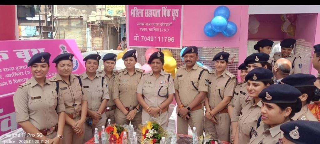 ग्वालियर ग्वालियर जिले में महिलाओं को प्राथमिकता देते हुए वरिष्ठ पुलिस अधीक्षक श्री धर्मवीर सिंह के निर्देश पर कोतवाली थाना क्षेत्र में प्रदेश का पहला पिंक बूथ का शुभारंभ हुआ . इस अवसर पर थाना प्रभारी मोहिनी वर्मा ने कहा कि इस पिंक बूथ में महिलाओं की शिकायत प्राथमिकता से सुनी जाएगी .
