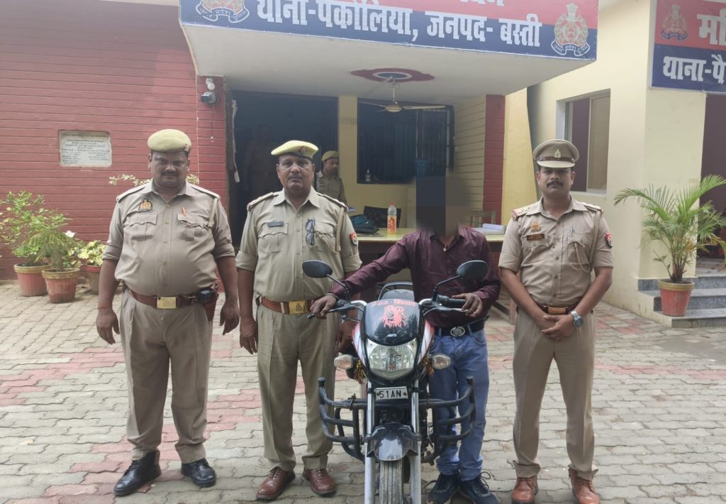 दिनांक 05.05.2025 को थाना क्षेत्र अंतर्गत आने वाले ग्राम जलेबीगंज से रात्रि करीब 09.30 बजे वाहन सं0 UP51AN 8958 गुम हो गई थी। आवेदक राजेन्द्र कुमार पुत्र रमेश सा0 चकचई थाना गौर जनपद बस्ती की तहरीर पर त्वरित कार्यवाही करते हुए प्रभारी निरीक्षक पैकोलिया मय पुलिस टीम के अथक प्रयास से 24 घंटे के के अंदर आवेदक की मोटरसाइकिल को बरामद कर आवेदक को सूचित कर थाना स्थानीय पर बुलाकर मोटरसाइकिल को सुपुर्द कर रुकसत किया गया।