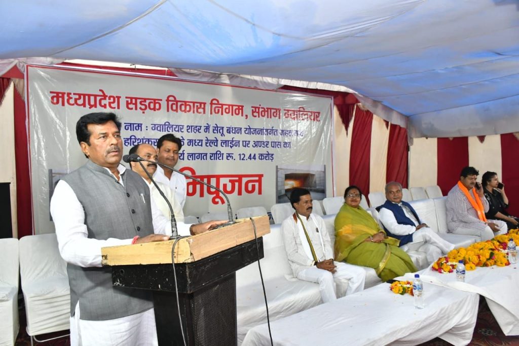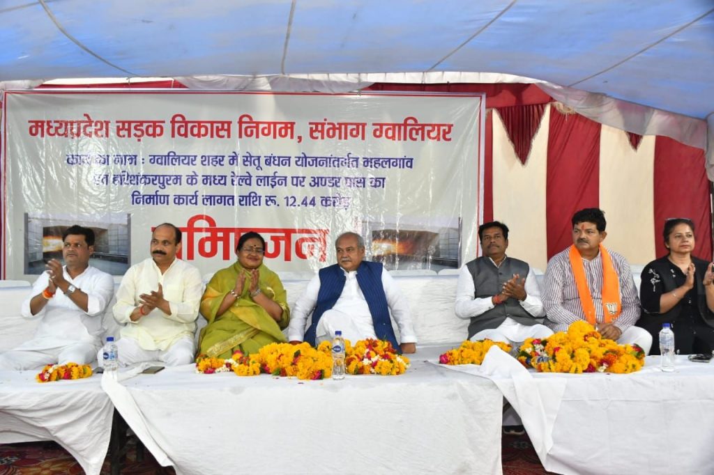 विगत दिवस ग्वालियर के हरिशंकरपुरम में 12.44 करोड़ की लागत राशि से बनने वाले रेलवे अंडर पास के निर्माण कार्य का भूमिपूजन मध्यप्रदेश विधानसभा अध्यक्ष श्री नरेंद्र सिंह तोमर जी और ग्वालियर सांसद श्री भारत सिंह कुशवाहा जी ने किया।