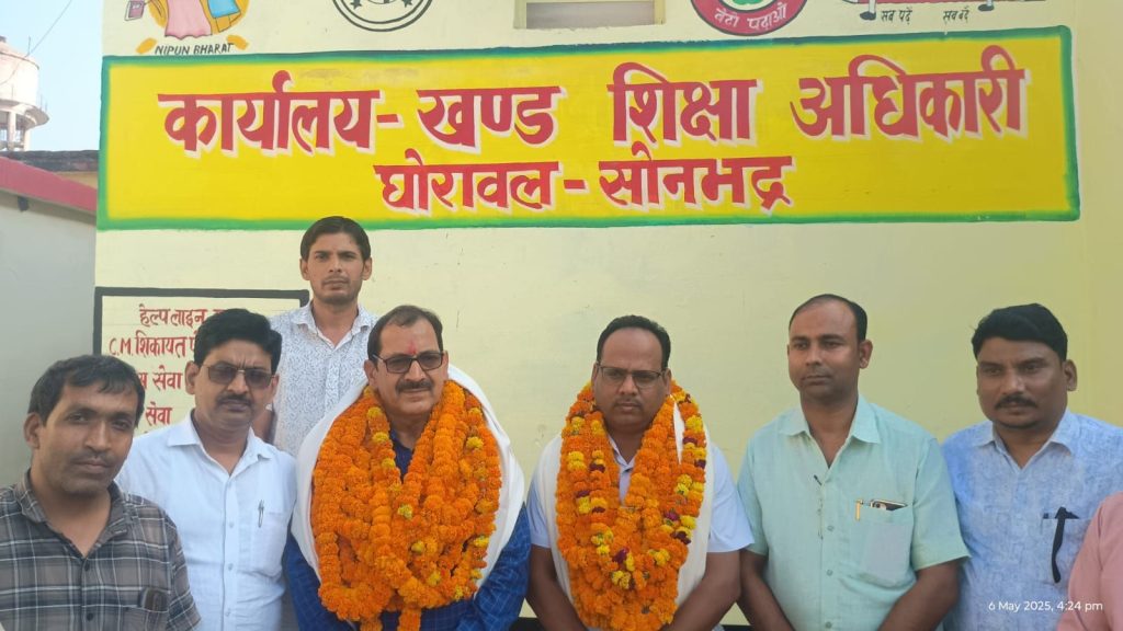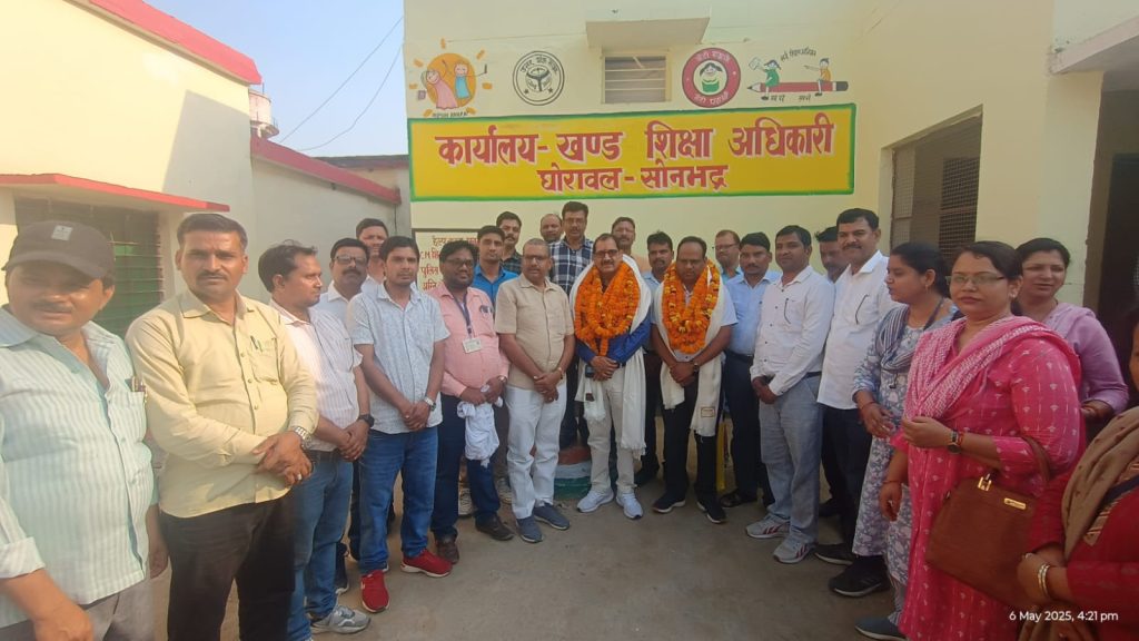 सोनभद्र(घोरावल)। शिक्षा क्षेत्र घोरावल के ब्लॉक संसाधन केंद्र सभागार में आयोजित समारोह में राष्ट्रीय शैक्षिक महासंघ द्वारा नवागत खंड शिक्षा अधिकारी श्री अरविंद कुमार पटेल का स्वागत किया गया एवं निवर्तमान खंड शिक्षा अधिकारी अशोक कुमार सिंह को भावभीनी विदाई दी गई।
