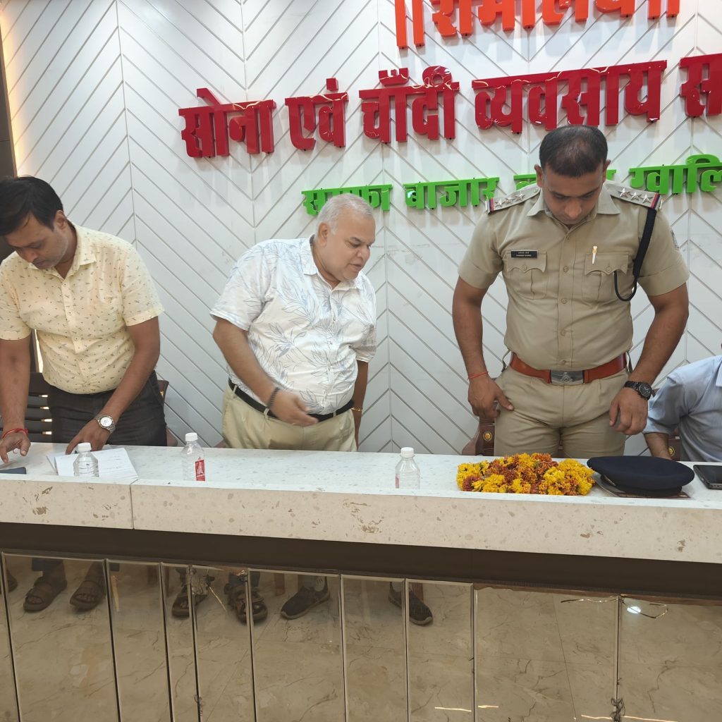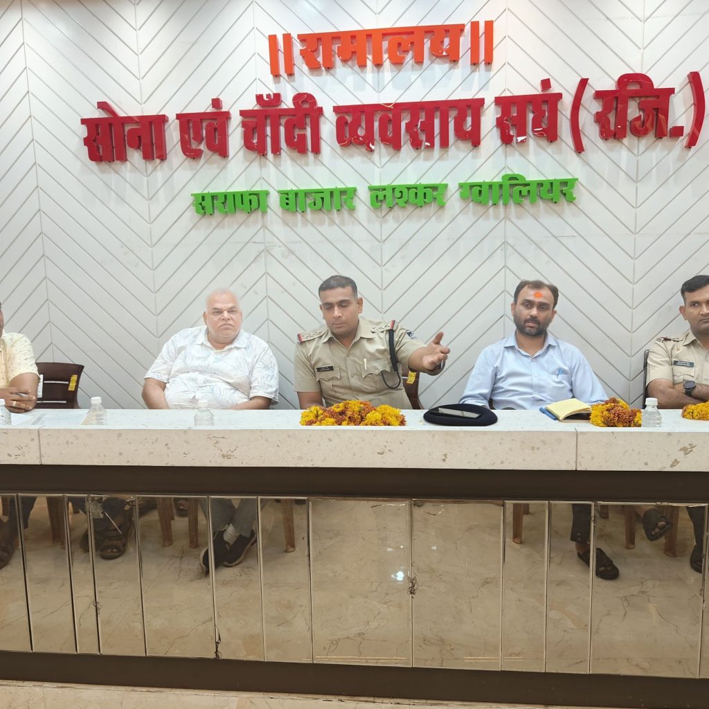ग्वालियर। महाराज वाडा स्थित सराफा बाजार में सुगम एवं सुचारु यातायात व्यवस्था को लेकर आज नगर निगम एवं पुलिस अधिकारियों के साथ व्यापारियों की बैठक हुई बैठक में विभिन्न सुझाव सुने गए तथा उन पर कार्रवाई हेतु संबंधित कर्मचारियों को निर्देशित किया गया।।