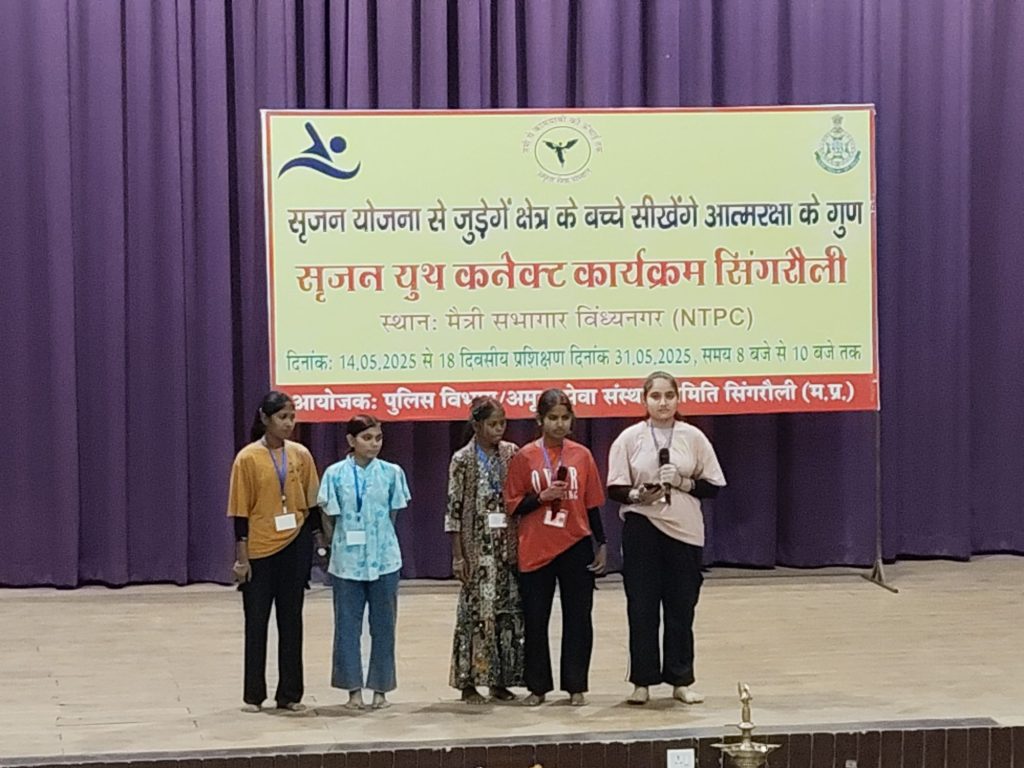 श्री रंजन ने कहा कि सफलता केवल सोचने से नहीं, बल्कि निरंतर मेहनत और आत्मविश्वास से मिलती है। यह कार्यक्रम यूनिसेफ और मध्यप्रदेश सामुदायिक पुलिस विभाग के संयुक्त प्रयास से प्रदेश के सभी जिलों में आयोजित किया जा रहा है। सिंगरौली जिले में पुलिस विभाग और अमृता सेवा संस्थान समिति के सहयोग से यह 18 दिवसीय कार्यशाला 14 मई से प्रारंभ हुई है।