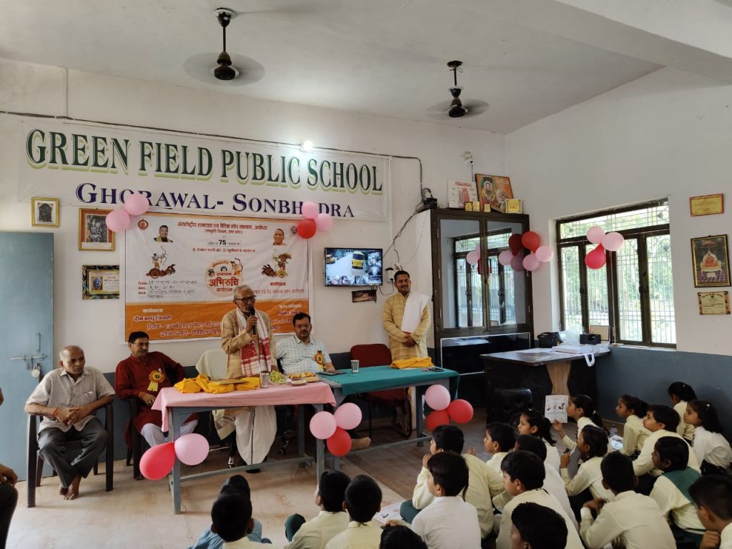 सोनभद्र। जनपद के घोरावल स्थित ग्रीनफील्ड पब्लिक स्कूल में चल रहे सात दिवसीय वेद गायन एवं वेद ज्ञान कार्यशाला का सफल समापन हुआ। समापन कार्यक्रम के मुख्य अतिथि उप जिलाधिकारी घोरावल राजेश कुमार सिंह रहे। मुख्य अतिथि ने वाग्देवी मां सरस्वती के प्रतिमा पर दीप प्रज्वल एवं माल्यार्पण कर समापन कार्यक्रम की शुरुआत की। इसके पूर्व दीनबंधु त्रिपाठी ने मुख्य अतिथि का अंगवस्त्र एवं बैच अलंकरण कर स्वागत किया। आए हुए अतिथियों का धन्यवाद ज्ञापन एवं आभार स्कूल के मैनेजिंग डायरेक्टर अनुराग पांडेय ने किया।