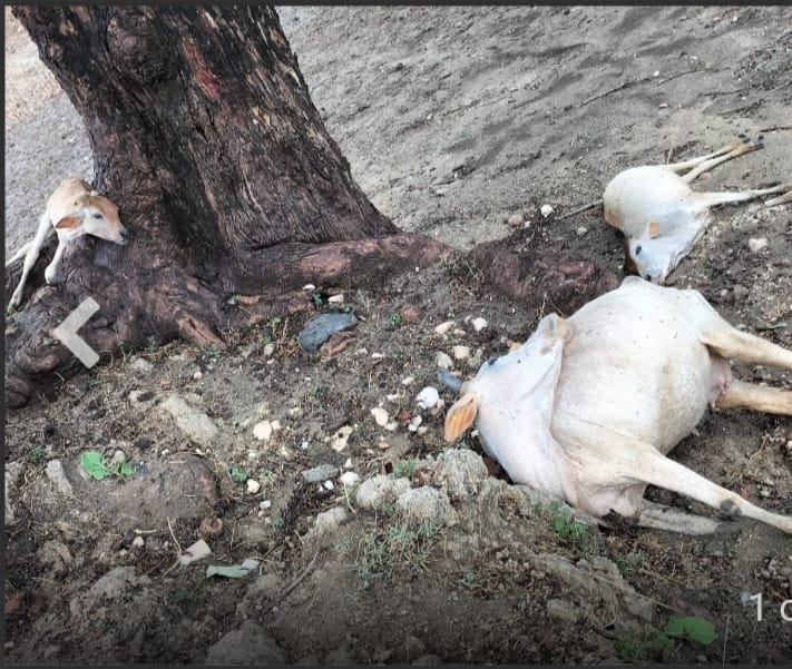 आकाशीय बिजली की चपेट मे आने से गाय और दो बछड़ों की मौत।