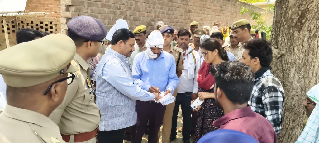 औरैया 29 मई 2025– जिलाधिकारी डॉ0 इंद्रमणि त्रिपाठी व पुलिस अधीक्षक अभिजित आर शंकर ने मिशन समाधान के अंतर्गत तहसील बिधूना की ग्राम पंचायत बलपुर राजपुर के मजरा कटघोर में पहुंचकर सरोज कुमार पुत्र बादशाह द्वारा दिए गए चकरोड संबंधी विवाद का निरीक्षण कर नपती आदि कराते हुए चकरोड को जेसीबी से निर्धारित स्थान पर चयनित कर बनवाया। जिस पर दोनों पक्षों द्वारा सहमति जताई गई तथा आमजन के आवागमन को सुविधा मिली। उक्त अवसर पर ग्राम वासियों द्वारा अवगत कराया गया कि ग्राम में विद्युत पोल कम होने के कारण विद्युत कनेक्शन लेने में आमजन को परेशानी हो रही है जिस पर जिलाधिकारी ने संबंधित अधिशासी अभियंता विद्युत को निर्देशित किया कि तत्काल विद्युत पोलों को स्थापित कराते हुए जरूरतमंदों को विद्युत कनेक्शन देना सुनिश्चित करें। गांव में खाद के गड्ढों पर अवैध रूप से कब्जे की जानकारी पर उप जिलाधिकारी को निर्देशित किया कि खाद के गढडों की भूमि की नपती कराते हुए अवैध कब्जा हटवा कर पात्रता के अनुरूप खाद के गड्ढों का आवंटन कराना सुनिश्चित करें।