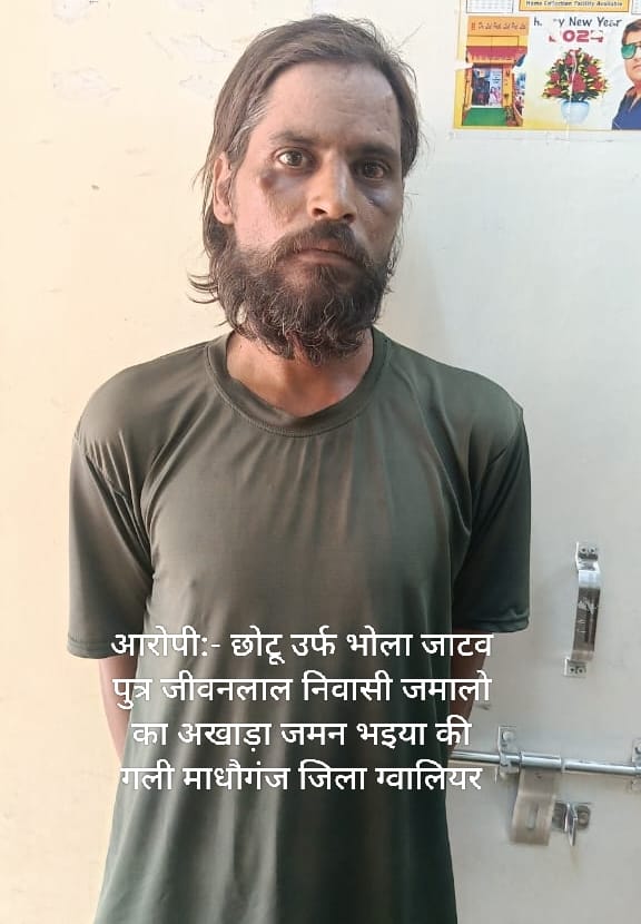 दौराने विवेचना दिनांक 31.05.2025 को जरिए मुखबिर सूचना मिली कि दिनांक 30.05.2025 को नया बाजार में अज्ञात व्यक्ति की पत्थर पटक कर हत्या करने वाला संदेही नेहरू पार्क के होकर्स जोन में बैठा हुआ है। सूचना पर थाना कम्पू पुलिस की टीम को तस्दकी कर संदेही को पकड़े हेतु भेजा गया। पुलिस टीम होकर्स जोन नेहरू पार्क के पास पहुँची और अंदर जाकर देखा तो मुखबिर द्वारा बताए हुलिया का एक संदेही बैठा हुआ था जो कि पुलिस को देखकर उठ कर जाने लगा तो उसे पुलिस टीम द्वारा रोका और उससे पूछताछ की गई उसने निवासी जमालो का अखाड़ा जमन भइया की गली माधौगंज जिला ग्वालियर का होना बताया। आरोपी से उक्त घटना के संबंध में पूछताछ की गई तो उसने अपना जुर्म स्वीकार किया। थाना कम्पू पुलिस द्वारा आरोपी को अप0क्र0 202/25 धारा 103 बीएनएस में विधिवत गिरफ्तार कर आरोपी से उक्त हत्या के संबंध में विस्तृत पूछताछ की जा रही है एवं थाना कम्पू पुलिस द्वारा उक्त अज्ञात मृतक की पतारसी के भी प्रयास किये जा रहे हैं जिसकी आरोपी द्वारा पत्थर पटकर हत्या की थी।