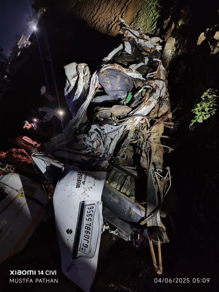 प्राप्त जानकारी अनुसार मृतक परिवार कल्याणपूरा के समीप भावपुरा ग्राम से शादी समारोह से लोट रहे थे तभी सजेली फाटक के समीप निर्माणाधीन पुल के समीप एक ट्राले ने ईको GJ 09 BL 5956 को टक्कर मार दी । टक्कर के बाद ट्राले ने इको को घसीटता हुआ ले गया। हादसे में इको सवार 9 लोगो की मौके पर ही मौत हो गई ।सभी मृतक शिवगढ़ महुड़ा तह. मेघनगर जिला झाबुआ के बताए जा रहे है । घटना की जानकारी मिलते ही थान्दला व मेघनगर की पुलिस एम्बुलेंस मौके पर पहुंची व घायलो एव मृतकों को सिविल अस्पताल थान्दला व मेघनगर अस्पताल पहुंचाया । दुर्घटना में मृतक मुकेश पिता गोपाल खपेड़ उम्र40 , सावली पतिमुकेश खपेड़ 35 वर्ष, विनोद पिता मुकेश खपेड़ 16 वर्ष, पायल पिता मुकेश खपेड़ 12 वर्ष , मढ़ी पति भारू बमनिया 38 वर्ष, विजय भारू बामनीय 14 वर्ष, कांता पिता भारू बमनिया 14 वर्ष, रागिनी रामचंद्र बमनिया 9 वर्ष, अकली पति सोमला परमार 35 वर्ष की मौत हो गई। जबकि पायल सोमला परमार 19 वर्ष देवीगढ़, आशु पिता रामचंद्र बमनिया 5 वर्ष घायल हुए जिन्हें रेफर किया गया । मृतक सावली का शव मेघनगर शासकीय अस्पताल पहुंचा जबकि अन्य मृतक के शव थान्दला सिविल हॉस्पिटल लाए गए । घटना की जानकारी के उपरांत प्रशासन घटना स्थल एवम अस्पताल पहुंचा ।ट्राला चालक फरार बताया जा रहा है ।