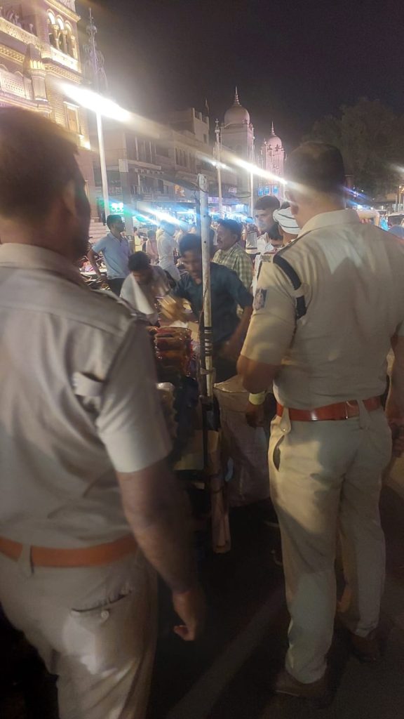 थाना प्रभारी धनंजय शर्मा. ग्वालियर: महाराज बाड़े से अतिक्रमण हटवाया .गौरतलब है कि शहर के हृदय स्थल महाराज बाड़े पर जोर शोर से फुटपाथ लगता है नगर निगम के फील्ड अफसरों की महाराज बाड़े पर ड्यूटी रहती है