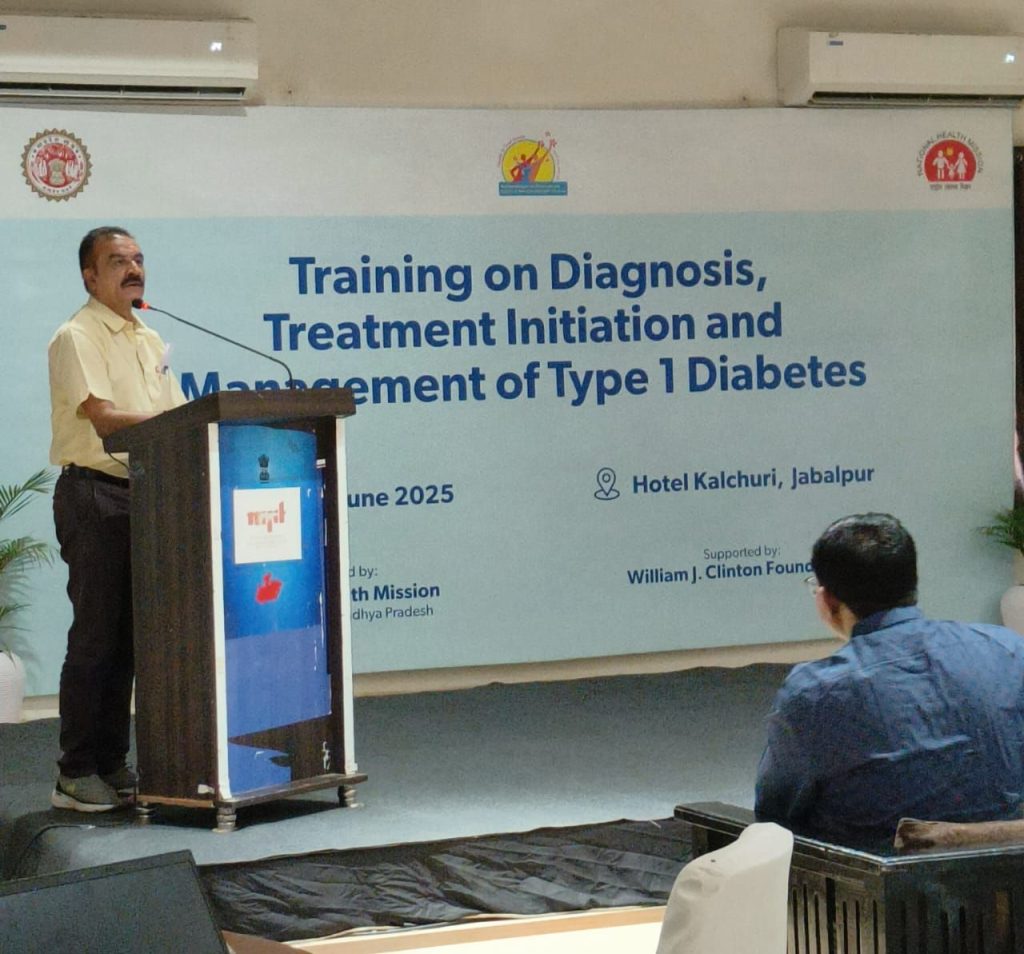 राष्ट्रीय स्वास्थ्य मिशन (NHM), मध्यप्रदेश के गैर-संचारी रोग (NCD) विभाग द्वारा 4 और 5 जून 2025 को विलियम जे क्लिंटन फाउंडेशन संस्था की सहायता से जबलपुर स्थित होटल कलचुरी रेजीडेंसी में टाइप 1 डायबिटीज़ (T1D) पर दो दिवसीय प्रशिक्षण कार्यक्रम का आयोजन किया गया। इस कार्यक्रम में भोपाल और जबलपुर संभाग के 12 ज़िला अस्पतालों से आए शिशु रोग विशेषज्ञों, एमडी मेडिसिन एवं चिकित्सा अधिकारियों ने भाग लिया। इस प्रशिक्षण का उद्देश्य ज़िला स्तर पर कार्यरत चिकित्सकों की विशेषज्ञता को सुदृढ़ करना था, ताकि टाइप 1 डायबिटीज़ से प्रभावित व्यक्तियों को समय पर और उपयुक्त उपचार मिल सके।
