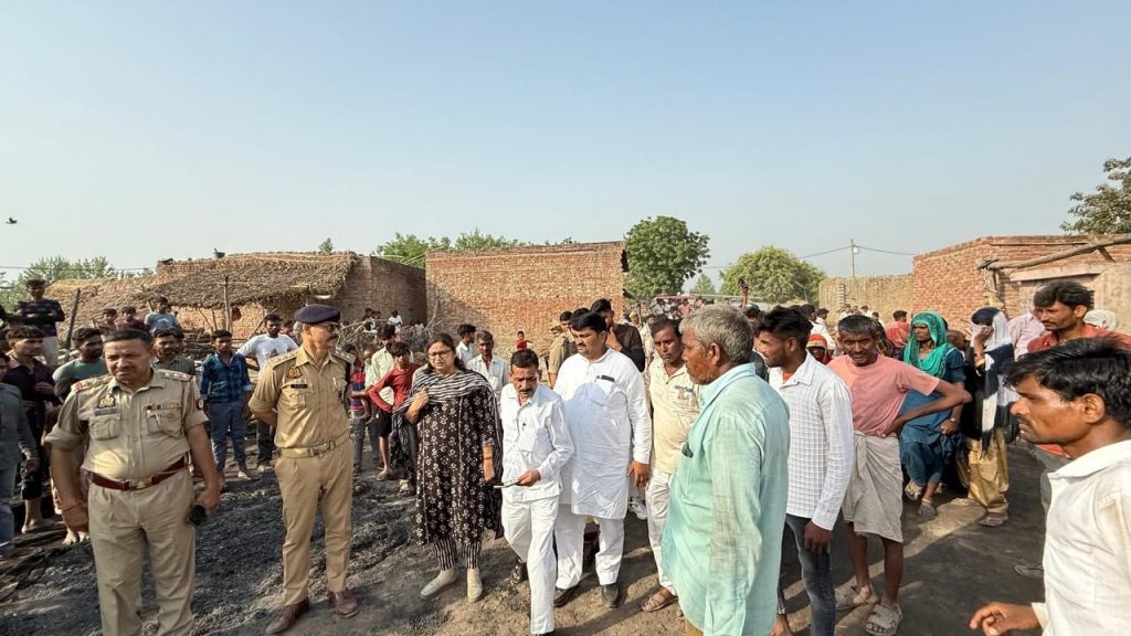 प्रेम सिंह के कच्चे मकान में अचानक आग लग गई कुछ ही देर में आग ने विकराल रूप धारण कर लिया जिसमें लगभग 25 लाख रुपए का हुआ परिवारजनों का नुकसान.6.मावेशीयों की मौत और बड़ी मुश्किल से पाया आग पर काबू और ग्रामीणों का आरोप दमकल वाहन करीब डेढ़ घंटे की देरी से पहुंचे जिसमें समय रहते आग पर आग बुझाने में ग्रामीणों ने भी पंपिंग सेट और बाल्टीयों की मददसे भरपूर प्रयास किया आग पर नहीं पाया जा सकाकाबू इस मौके पर परिजनों को सातवना देने पहुंचे राजेंद्र सिंह खड़कवंशी ब्लाक प्रमुख गंगेश्वरी व साथ में पुलिस क्षेत्र अधिकारी.दीप कुमार पंत हसनपुर उपजिला अधिकारी विभा श्रीवास्तव.हसनपुर तहसीलदार हसनपुर राजस्व निरीक्षक लेखपाल आदि अधिकारी कर्मचारी मौजूद रहे और जो आग में भारी नुकसान हुआ है उसकी हर संभव मदद के लिए अधिकारियों को किया निर्देशित जो परिवारजनों को हर संभव मदद करने का आश्वासन दिया और क्षेत्र में इस घटना की क्षेत्र में शोक की लहर है और साथ में मलकपुर नरेश सिंह चरण सिंह प्रधान मरोरा, , प्रेमशंकर आदि ग्रामवासी मौजूद रहे, सवाददाता…………….मुशीर खान……… उत्तरप्रदेश