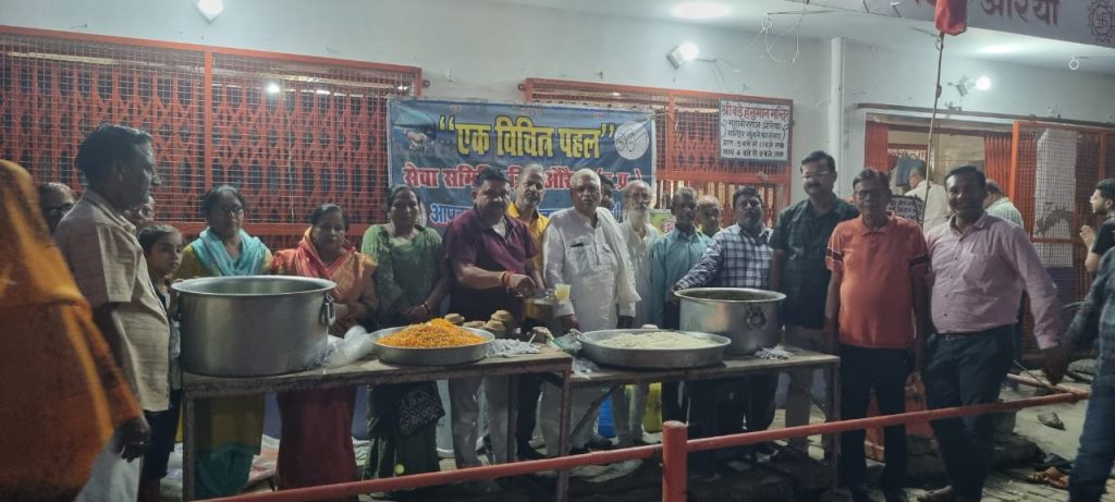 औरैया –समाजसेवी संगठन एक विचित्र पहल सेवा समिति के सक्रिय सदस्य अखिलेश पोरवाल व महिला शाखा तुलसी सखी ग्रुप की सक्रिय सदस्य सीता पोरवाल द्वारा ज्येष्ठ माह के अंतिम मंगलवार को आज दिनांक 10 जून को शाम 6 बजे महावीर गंज, औरैया स्थित बड़े हनुमान जी मंदिर पर प्रसाद वितरण किया गया, कार्यक्रम के अंतर्गत समिति के संस्थापक आनन्द नाथ गुप्ता एडवोकेट ने बताया कि ज्येष्ठ मास का धार्मिक महत्व व्रत-उपवासों के साथ इस माह में हनुमान जी, शिव जी व विष्णु जी की पूजा का विशेष महत्व है। गौरतलब है कि इस माह गंगा दशहरा पर गंगा स्नान, निर्जला एकादशी व बड़े मंगल जैसे व्रतों को रखने तथा विधि-विधान से पूजा पाठ आदि करने से समस्त मनोकामनाएं, सुख-समृद्धि के साथ व्यक्ति को पुण्य-फल तथा धार्मिक आशीर्वाद प्राप्त होता है। आज के दिन लोग बड़वा मंगल के नाम से बजरंगबली की पूजा-अर्चना के उपरांत बड़ी श्रद्धा व प्रेम के साथ प्रसाद भंडारा भी वितरित करते हैं जिससे उनको आत्मिक प्रसन्नता की अनुभूति होती है। कार्यक्रम में प्रमुख रूप से श्री गोपाल सेवा संस्थान के प्रांतीय अध्यक्ष रमन पोरवाल, अखिल भारतीय पुरवार पोरवाल महासभा, औरैया इकाई के जिलाध्यक्ष समाजसेवी शिव कुमार पुरवार, समिति के अध्यक्ष राजीव पोरवाल (रानू),कपिल गुप्ता, राकेश अवस्थी, ऋषि पोरवाल, पूर्व सभासद पंकज मिश्रा, शिक्षक अमित गुप्ता, देवेंद्र आर्य, शिक्षक अर्पित गहोई, अनिल पोरवाल, मोहिनी, मनोज पुरवार, अरविंद सिंह, पटू गहोई, हिमांशु दुबे आदि लोग मौजूद रहे।