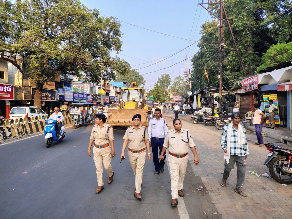 जबलपुर शहर की यातायात व्यवस्था सुव्यस्थित एवं सुचारू बनाये रखने तथा सड़क दुर्घटनाओं में कमी लाने हेतु पुलिस अधीक्षक जबलपुर श्री सम्पत उपाध्याय (भा.पु.से.) के आदेशानुसार एवं अतिरिक्त पुलिस अधीक्षक यातायात श्री समर वर्मा के मार्गदर्शन में जबलपुर की यातायात व्यवस्था के सुचारू संचालन हेतु कार्ययोजना तैयार की गई है। जिसके तहत् आज दिनांक 12.06.2025 को उप पुलिस अधीक्षक यातायात मालवीय चौक श्री संतोष कुमार शुक्ला,, यातायात गढ़ा श्री बैजनाथ प्रजापति, यातायात घमापुर श्रीमति संगीता डामोर के नेतृत्व में यातायात पुलिस एवं नगर निगम की संयुक्त टीम द्वारा दुकानदारों के द्वारा आम रोड पर किये गये अस्थाई अतिक्रमण को हटाने की कार्यवाही की गई है। जिसमें रेल्वे स्टेशन, मालगोदाम चौक, इंद्रामार्केट, पुल न. 01, तीन पत्ती चौक, मालवीय चौक, गोरखपुर मार्केट, छोटी लाईन फाटक क्षेत्र में पैदल भ्रमण कर हाथ ठेले, टपरे आदि द्वारा किये गये अस्थाई अतिक्रमण को हटवाया गया है। साथ ही मार्ग में वाहनों की सुव्यवस्थित पार्किंग करवाया गया, एवं आम रोड पर खतरनाक तरीके से एव ंनो पार्किंग में खड़े वाहन एवं अमानक नम्बर प्लेट वाले वाहन चालकों पर मोटर व्हीकल एक्ट के तहत् चालानी कार्यवाही की गई है।