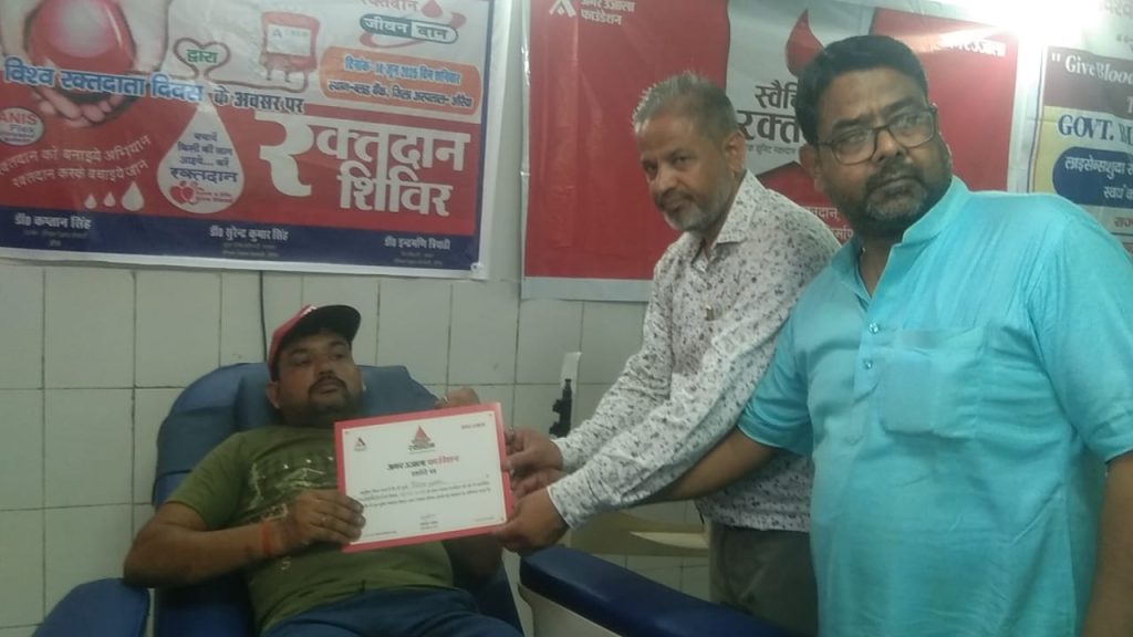 औरैया –अमर उजाला फाउंडेशन तथा NGO एक विचित्र पहल सेवा समिति, औरैया के तत्वाधान में विश्व रक्तदान दिवस के अवसर पर आज दिनांक 14 जून-2025 दिन शनिवार को प्रातः 10 बजे 50 सैया जिला अस्पताल, औरैया में रक्तदान शिविर का आयोजन किया गया, जिसका शुभारंभ मा. अभिजित आर शंकर पुलिस अधीक्षक, औरैया के कर-कमलों द्वारा संपन्न हुआ, आयोजन में प्रमुख रूप से समिति के अध्यक्ष राजीव पोरवाल (रानू) समाजसेवी अभिषेक गुप्ता, अमर उजाला कार्यालय के प्रतिनिधि व समाजसेवी संगठन एक विचित्र पहल सेवा समिति, औरैया के संरक्षक अखिल भारतीय पुरवार पोरवाल महासभा, औरैया इकाई के जिलाध्यक्ष समाजसेवी शिवकुमार पुरवार, गंगा समग्र के जिलाध्यक्ष मनोज कुमार गुप्ता एडवोकेट, कपिल गुप्ता, आदित्य पोरवाल, अखिलेश पोरवाल, बीटेक में अध्ययनरत् छात्र ध्रुव चौधरी, मयंक पोरवाल (लकी) आदि सदस्य मौजूद रहे, समिति के अध्यक्ष राजीव पोरवाल (रानू) व संस्थापक आनन्द नाथ गुप्ता एडवोकेट ने रक्तदान करने वाले योद्धाओं को प्रमाण पत्र भेंट किये, उसके उपरांत लोगों से रक्तदान करने की अपील की।*