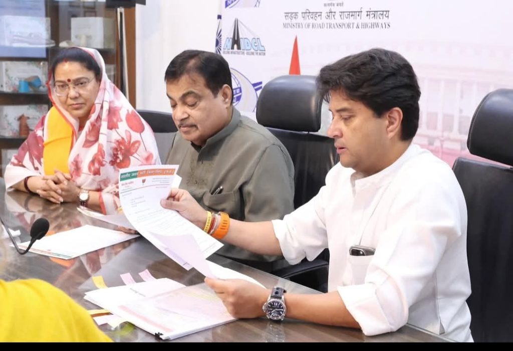 .ग्वालियर से अतुल मल्होत्रा की रिपोर्ट .केंद्रीय मंत्री ज्योतिरादित्य सिंधिया ने ग्वालियर को एक और सौगात दी .आज दिल्ली में भिंड से आए प्रतिनिधि मंडल के साथ केंद्रीय मंत्री श्री नितिन गडकरी से मुलाकात कर NH – 719 के चौड़ीकरण हेतु आवेदन दिया जिसे माननीय गडकरी ने स्वीकार किया .वर्तमान में यह मार्ग दो लेन का है जो अब चार लेन में विस्तारित किया जाएगा