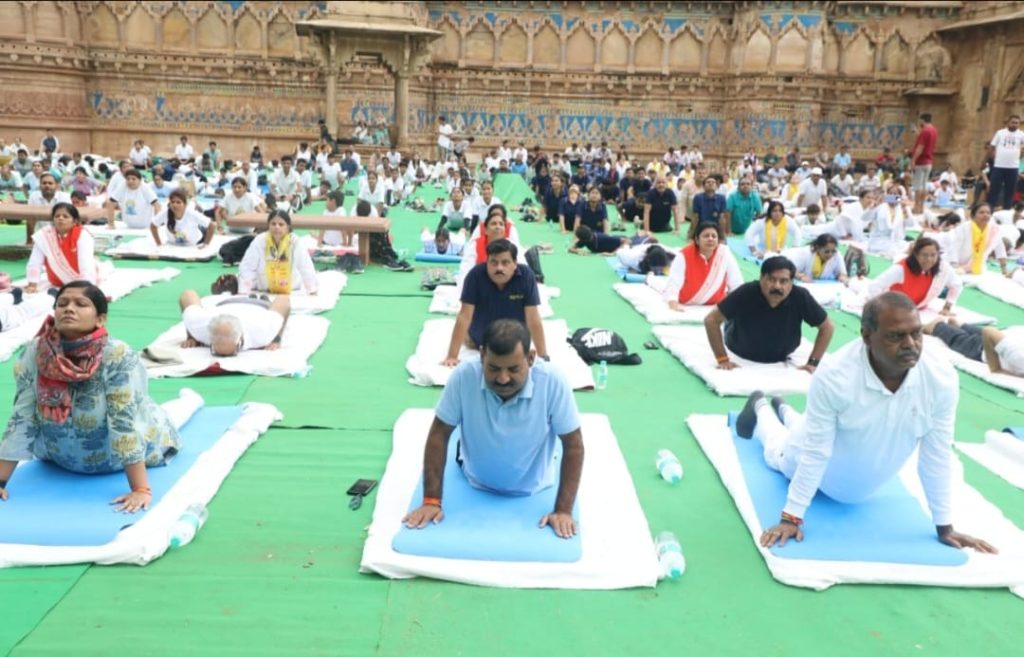 ग्वालियर से अतुल मल्होत्रा की रिपोर्ट. जिले में आज शनिवार को 11 वा अंतर्राष्ट्रीय योग दिवस हर्षोल्लास के साथ मनाया गया . अंतर्राष्ट्रीय योग दिवस पर जिला स्तरीय कार्यक्रम ग्वालियर दुर्ग पर राजा मानसिंह महल ke समीप सुबह 6 बजे से आयोजित किया गया . सामाजिक न्याय मंत्री नारायण कुशवाह, कलेक्टर रुचिका चौहान , एस एसपी धर्मवीर सिंह मौजूद रहे .