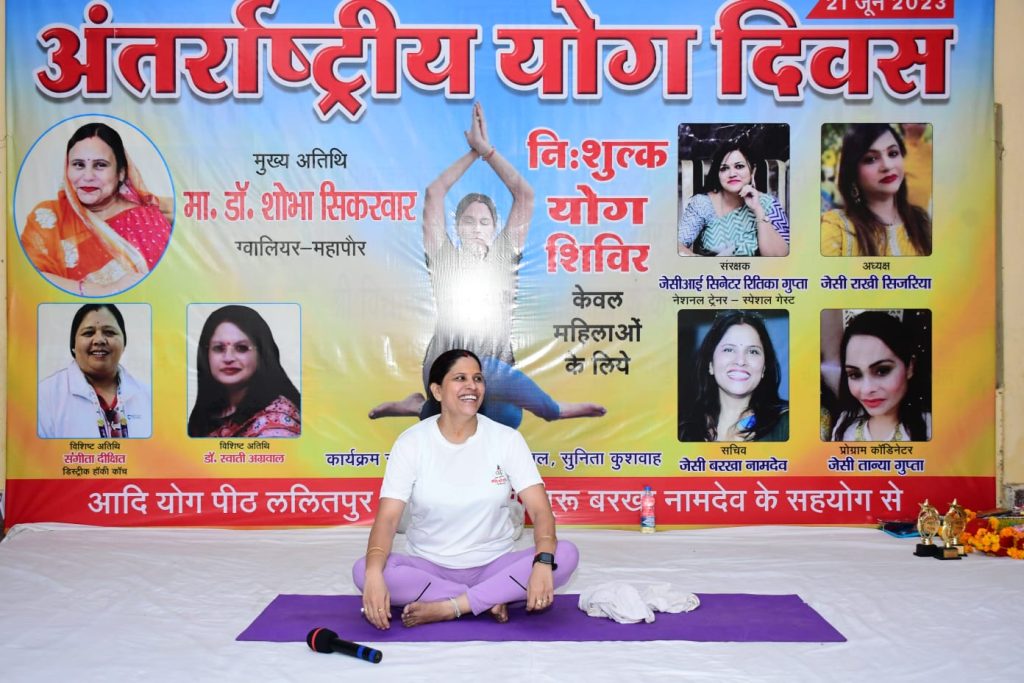 . ग्वालियर से अतुल मल्होत्रा की रिपोर्ट . आदि शक्ति योग पीठ द्वारा आज अंतर्राष्ट्रीय योग दिवस पर निशुल्क योग शिविर आयोजित हुआ .इस अवसर पर महापौर डॉ शोभा सिकरवार, योग गुरु बरखा नामदेव ,प्रोग्राम coodinater JC तान्या गुप्ता , विशिष्ट अतिथि थाना प्रभारी Inderganj दीप्ति तोमर, JCI सेनेटर रीतिका गुप्ता मौजूद रही . इस अवसर पर योग गुरु बरखा नामदेव ने कहा कि योग भारत की तरफ से मानवता ke लिए एक अनमोल सौगात है जो व्यक्तिगत कल्याण के साथ साथ मानवता ke बीच एकता का प्रतीक लाती हैं