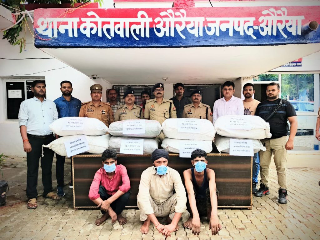 औरैया पुलिस की बड़ी सफलता 96.870 किलो गांजा सहित तीन तस्कर गिरफ्तार, 50 लाख की नशीली खेप बरामद