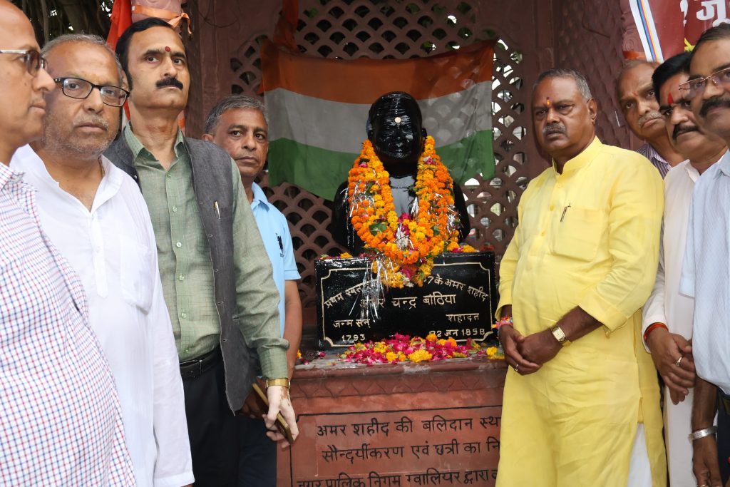 ग्वालियर से अतुल मल्होत्रा की रिपोर्ट . माननीय मंत्री श्री नारायण सिंह कुशवाह जी, कैबिनेट मंत्री, सामाजिक न्याय एवं दिव्यांगजन सशक्तिकरण, उद्यानिकी तथा खाद्य प्रसंस्करण विभाग। आज ग्वालियर दक्षिण विधानसभा क्षेत्र के सराफा बाजार स्थित भारतीय जनता पार्टी द्वारा आयोजित श्रद्धांजलि सभा शहीद स्व. श्री अमरचंद बांठिया जी के बलिदान दिवस पर सम्मिलित होकर श्रद्धांजलि अर्पित की। इस अवसर पर वरिष्ठ नेता श्री ओमप्रकाश जाजोरिया जी, पार्षद श्री संजय सिंघल जी, जिला महामंत्री श्री राजू पलैया जी, श्री रमेश चंद्र सेन जी, श्री हरिदास अग्रवाल जी, श्री दीपक जैन जी, श्री प्रमोद खण्डेलवाल जी, श्री पारस बरैया जी, श्री सुधांशु भारद्वाज जी, श्री कपिल शर्मा जी, श्री मनोज बांठिया जी, श्री श्याम शर्मा जी, श्री भोलू जैन जी, श्री जुगल चौरसिया जी, श्री मनोज भार्गव जी, श्री महेश बैजल जी सहित भाजपा कार्यकर्ता उपस्थित रहे।