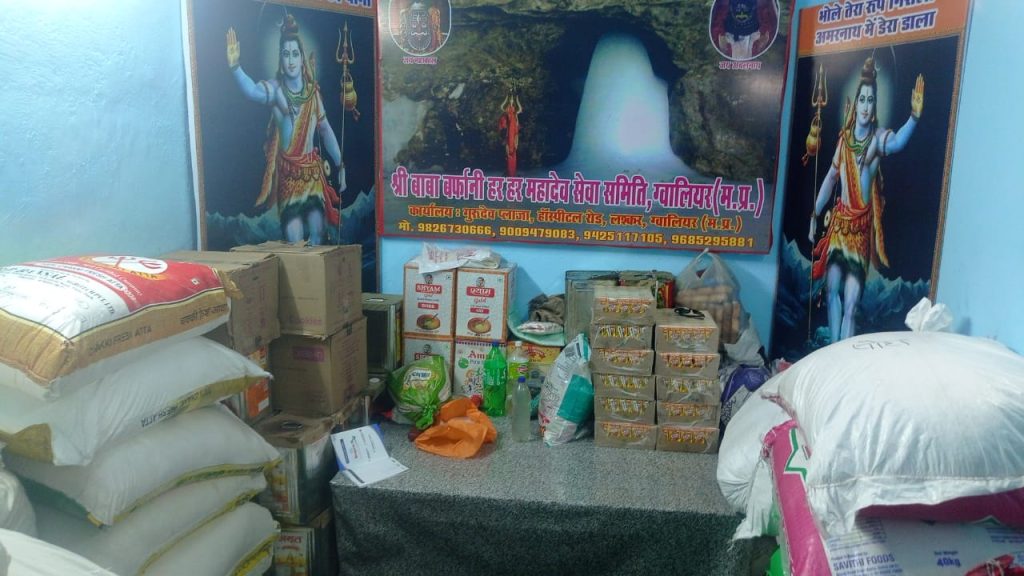 अमरनाथ यात्रा पर लगने वाले ग्वालियर के श्री बाबा बर्फानी हर-हर महादेव सेवा समिति के लंगर को मनीग्राम बैस कैम्प में भंडारा लगाने की परमिशन जम्मू कश्मीर सरकार द्वारा दे दी गयी है , यह जानकारी समिति के मुख्य संरक्षक महेंद्र भदकारिया रामशरण गुप्ता शूर वीर सिंह चाहर बृज कटारिया अध्यक्ष लोकेश शर्मा सचिव पन्नालाल गौड़ ने बताया कि सभी ग्वालियर शहर बालों का भरपूर सहयोग तन मन धन किया जिसके चलते समय से पहले ही रसद सामग्री पूरी हो चुकी जिसमें 100 कार्टून पानी बोतल दाल चावल बेशन आटा घी रिफांइड व सरसों तेल पोहा पाउडर वाला दूध फ्रूटी आदि शामिल है