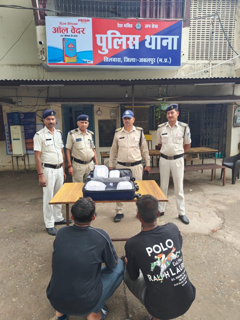 आदेश के परिपालन में अति. पुलिस अधीक्षक शहर श्री आनंद कलादगी (भा.पु.से.), अति. पुलिस अधीक्षक जोन 2 श्री समर वर्मा, नगर पुलिस अधीक्षक गढ़ा श्री आशीष जैन, उप पुलिस अधीक्षक अपराध श्री उदय भान बागरी के मार्गदर्शन में क्राईम ब्रांच एवं थाना तिलवारा की टीम द्वारा 2 आरोपी को 07 किलो 242 ग्राम गांजा के साथ रंगे हाथ पकड़ा गया।