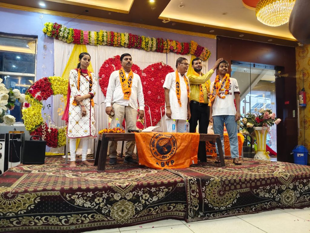 औरैया –अखिल भारतीय विद्यार्थी परिषद औरैया की नगर इकाई की सत्र 2025- 2026 की कार्यकारिणी का गठन किया गया। इकाई कार्यकारिणी की घोषणा विभाग संयोजक सुदीप चौहान ने की सभी घोषित कार्यकर्ताओं का फूल मालाओं से स्वागत किया गया ! चुनाव अधिकारी के रूप में परिषद के ज्येष्ठ कार्यकर्ता रमन पोरवाल एवं संवेदना ग्रुप के संस्थापक डॉ सक्षम सेंगर ने दायित्वों का चयन किया। उन्होंने शिक्षक एवं छात्रों को परिषद के विषय मे अवगत कराते हुए कहा कि अखिल भारतीय विद्यार्थी परिषद विश्व का सबसे बड़ा छात्र संगठन होने के साथ ही सामाजिक संगठन भी है। नगर के पालक के रूप मे जिला संयोजक भानु प्रताप ने बताया की विद्यार्थी परिषद ने छात्र हितों के साथ उनके मानसिक,नैतिक एवं चारित्रिक विकास पर सदैव ध्यान दिया है और इसी कार्यपद्धति के कारण विद्यार्थी परिषद के कार्यकर्ता सभी क्षेत्रों में अपनी अहम भूमिका का निर्वहन कर रहे हैं। जिला प्रमुख डॉo अंशुल दुबे ने नगर कार्यकारिणी के सभी पदाधिकारियों को शुभकामनाएं देते हुए विद्यार्थी परिषद के सुदृढ़ होने की आशा व्यक्त की है।