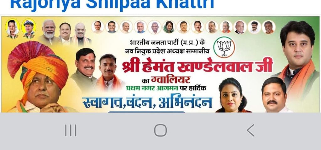 भारतीय जनता पार्टी मध्यप्रदेश के नवनियुक्त प्रदेश अध्यक्ष श्री हेमंत खण्डेलवाल के प्रथम आगमन पर समस्त पंजाबी समाज ग्वालियर के द्वारा माननीय प्रदेशाध्यक्ष का भव्य स्वागत कल 17 जुलाई को दोपहर 1 बजे होटल सेंट्रल पार्क के बाहर, सिटी सेंटर ग्वालियर में आयोजित किया जाएगा .पंजाबी समाज के संयोजक हिमांशु खत्री ने सभी पंजाबी समाज के साथियों से समय पर पधारकर स्वागत कार्यक्रम को सफल बनाने की अपील की हैं.