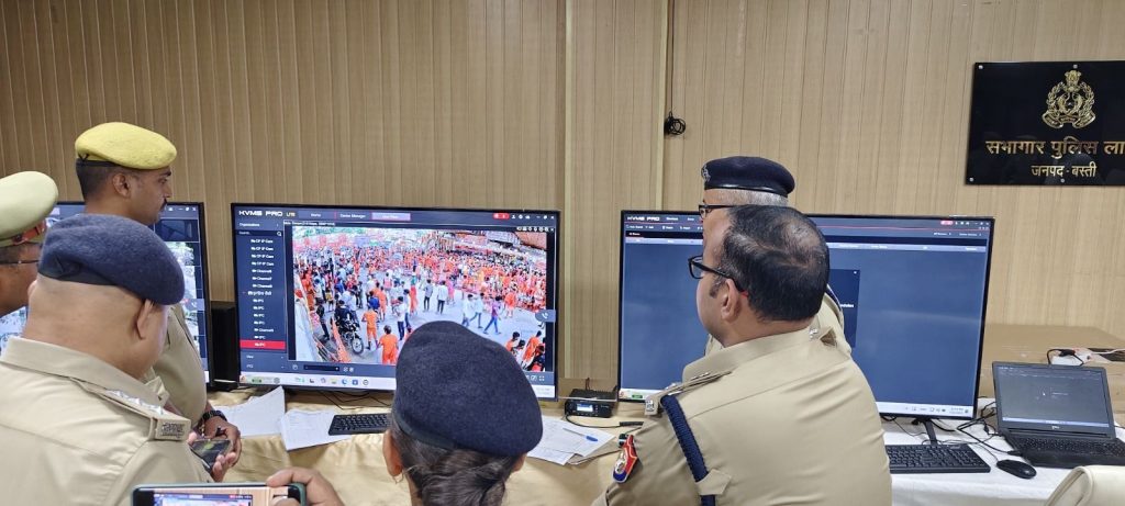श्रावण शिवरात्रि- कांवड़ यात्रा, भदेश्वरनाथ मेला को सकुशल सम्पन्न कराने के दृष्टिगत पुलिस अधीक्षक बस्ती श्री अभिनन्दन, अपर पुलिस अधीक्षक बस्ती श्री ओमप्रकाश सिंह, क्षेत्राधिकारी सदर श्री सत्येन्द्र भूषण तिवारी, क्षेत्राधिकारी रूधौली सुश्री स्वर्णिमा सिंह द्वारा कंट्रोल रूम टीम के साथ बैठकर मॉनिटरिंग कर व्यवस्थाओं की सभी पहलुओं को चेक किया गया तथा आवश्यक दिशा निर्देश दिया गया। सभी अधिकारियों द्वारा लगातार भ्रमणशील होकर ड्यूटियां चेक की जा रही है, व्यवस्था का निरीक्षण किया जा रहा है। भदेश्वरनाथ मेला क्षेत्र में सीसीटीवी कैमरों के माध्यम से संपूर्ण मेला क्षेत्र, कांवरियों के रुट मार्ग की मॉनिटरिंग एक आधुनिक सीसीटीवी कंट्रोल रुम स्थापित कर यातायात पर नजर रखी जा रही है, विभिन्न स्थानों पर जो पुलिस की ड्यूटी लगायी गयी है, उनको भी कैमरों के माध्यम से चेक किया जा रहा है, वायरलेस सेट के माध्यम से तत्काल कैमरे की मानिटरिंग के आधार पर जो कमियां आ रही हैं, संबंधित को निर्देशित किया जा रहा है, जिससे सुगम यात्रा कांवड़ की सुनिश्चित कराया जा सके।