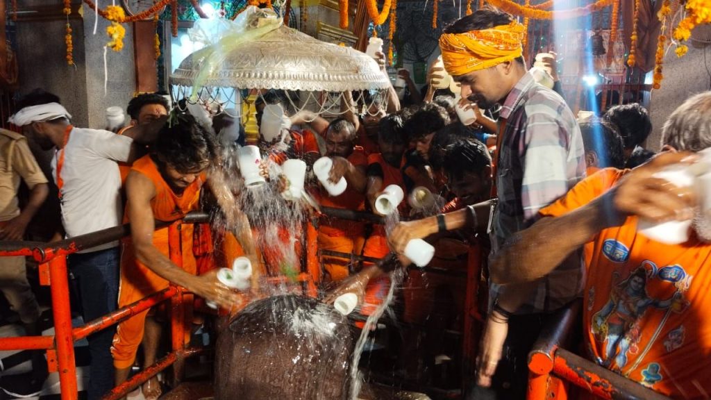 अयोध्या से पावन सरयू नदी का जल लाकर कावड़ भक्त कर रहे जलाभिषेक।
