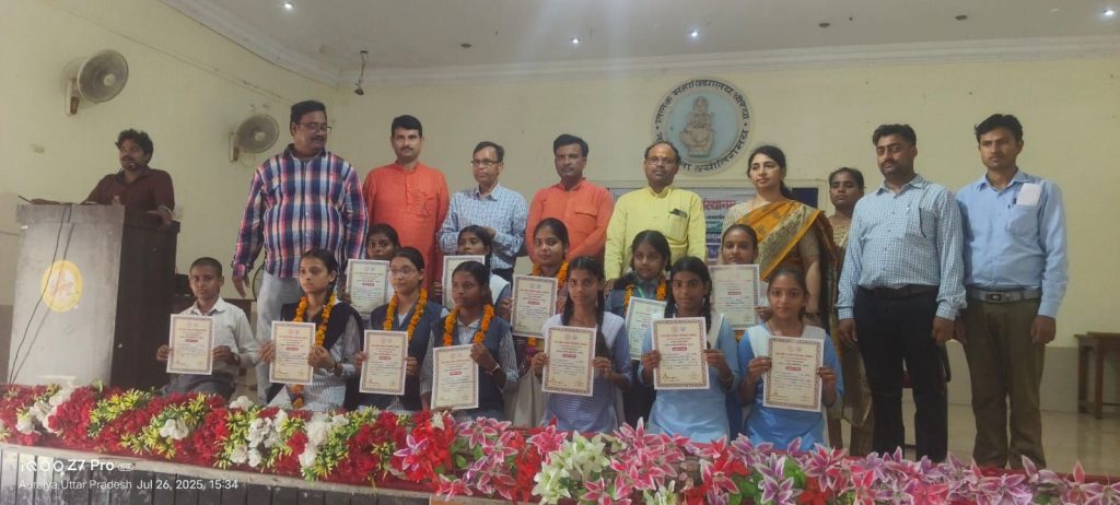 औरैया –उत्तर प्रदेश संस्कृत संस्थान लखनऊ द्वारा आयोजित जनपद स्तरीय संस्कृत गीत एवं संस्कृत सामान्य ज्ञान प्रतियोगिताएं तिलक महाविद्यालय औरैया के इंदिरा सभागार में सम्पन्न हुईं। विगत 26 जुलाई को देर शाम तक चले संस्कृत प्रतिभा खोज के इस कार्यक्रम के विषय में जनपद संयोजक डॉ0 गोविन्द द्विवेदी ने बताया कि कार्यक्रम अध्यक्षता महाविद्यालय के प्राचार्य प्रो0 (डॉ0) रवि कुमार ने की।