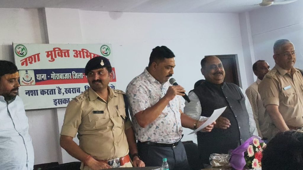 इसी तारतम्य में आज दिनॉक 27-7-25 को पुलिस अधीक्षक श्री सम्पत उपाध्याय के मार्गदर्शन में नशामुक्त समाज की दिशा में जागरूकता फैलाने हेतु अतिरिक्त पुलिस अधीक्षक ग्रामीण श्री सूर्यकांत शर्मा द्वारा  थाना गोरा बाजार क्षेत्र अंतर्गत आदिवासी हरिजन परिलक्षित केंद्र तिलहरी में दुर्गावती नगर तिलहरी बालक क्रीड़ा परिसर में जन चेतना शिविर एवं नशा मुक्ति कार्यक्रम में उप पुलिस अधीक्षक अ.जा.क श्री सुनील नेमा, नगर पुलिस अधीक्षक सी केंट श्री उदयभान बागरी तथा नगर निगम अध्यक्ष  श्री निकुज ब्रिज की उपस्थिति में आयोजित जागरूकता कार्यक्रम में विस्थापित बस्ती दुर्गावती नगर तिलहरी फेस वन,  फेस टू के लगभग 400 से 500 लोगों को नशे के दुष्प्रभाव के बारे में बताते हुये नशे से दूरी है जरूरी  नशा मुक्ति के तहत शपथ दिलाई गई।