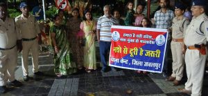 इसी तारतम्य में जबलपुर जिले में  पुलिस महानिरीक्षक जबलपुर जोन जबलपुर श्री प्रमोद वर्मा (भा.पु.से.), उप पुलिस महानिरीक्षक जबलपुर रेंज जबलपुर श्री अतुल सिंह (भा.पु.से.) के मार्गदर्शन में पुलिस अधीक्षक जबलपुर श्री सम्पत उपाध्याय (भा.पु.से.) द्वारा समस्त राजपत्रित अधिकारियों एवं थाना प्रभारियों को  ’’नशे से दूरी, है जरूरी’’ नशा मुक्ति जनजागरण अभियान के अंतर्गत  शैक्षणिक संस्थानों में संवाद एवं विचार गोष्ठियां, हाट-बाजारों व सार्वजनिक स्थलों पर नुक्कड़ नाटक, पोस्टर-पंपलेट के माध्यम से जागरूकता, जनसंवाद एवं रैली का आयोजन कर लोगों को जागरूक करने हेतु आदेशित किया गया है।