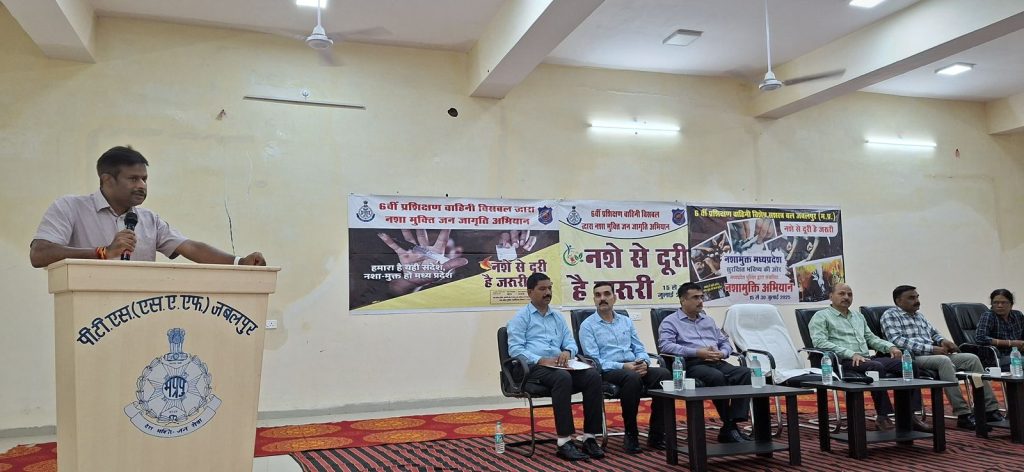 इसी अभियान के तहत 6 वीं बटालियन जबलपुर कमांण्डेंट श्री सिद्धार्थ चौधरी भा.पु.से. के मार्गदर्शन में दिनांक 30.07.2025 को नशे से दूरी है जरूरी विषय पर पीटीएस जबलपुर में प्रशिक्षु नव आरक्षकों की भाषण प्रतियोगिता का आयोजन बटालियन के नवीन सामुदायिक भवन में संपन्न करायी गयी। प्रतियोगिता में नव आरक्षकों द्वारा नशे से दूरी है जरूरी विषय पर सारगर्भित विचार व्यक्त किये गये।