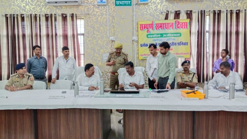 उक्त के पूर्व जिलाधिकारी डॉ० इन्द्रमणि त्रिपाठी व पुलिस अधीक्षक अभिजित आर शंकर ने सदर तहसील औरैया में आयोजित संपूर्ण समाधान में क्षेत्र से आये फरियादियों के समस्या संबंधी आवेदन लेकर उनकी समस्याओं को सुनते हुए संबंधितों को निर्देश दिए। उन्होंने कहा कि सरकार की मंशा है कि कोई समस्या ग्रस्त आमजन अपनी समस्या के लिए बार-बार न भटके और उसे सही समाधान मिले इसलिए हम सभी की जिम्मेदारी है कि अपनी ड्यूटी का ईमानदारी से निर्वहन करते हुए समस्याओं का निराकरण करें।