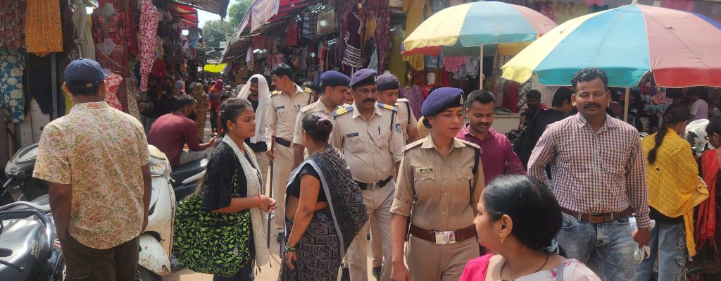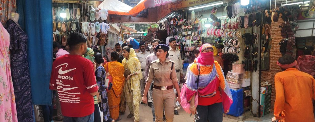 अतुल मल्होत्रा ब्यूरो रिपोर्ट.आगामी त्यौहार के चलते बाजारों में अत्यधिक भीड़ होने के कारण थाना प्रभारी कोतवाली मोहिनी वर्मा द्वारा अपने बल के साथ में बाजारों भ्रमण किया गया एवं महिलाओं को समझाइए दी गई।