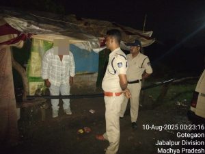 ’पुलिस अधीक्षक जबलपुर श्री सम्पत उपाध्याय (भा.पु.से.)’ द्वारा शहर में कानून व्यवस्था सुदृढ करने एवं अपराधों की रोकथाम हेतु गुंडे, बदमाशों एवं असामाजिक तत्वों के विरुद्ध उनके आपराधिक रिकार्ड को दृष्टिगत रखते हुए प्रतिदिन प्रतिबंधात्मक कार्यवाही कराई जा रही है वहीं थानों में लंबित वारंटो की तमीली तथा मामलों में फरार आरोपियों की गिरफ्तारी, संपत्ति संबंधी अपराधों की रोकथाम के लिए कांबिंग गस्त हेतु आदेशित किए जाने पर दिनॉक 9-8-25 की रात 09 बजे से आज दिनांक 10-8-25 की रात्रि 2-30 बजे तक अतिरिक्त पुलिस अधीक्षक शहर श्री आनंद कलादगी (भा.पु.से.), अतिरिक्त पुलिस अधीक्षक जोन 2 सुश्री पल्लवी शुक्ला, अतिरिक्त पुलिस अधीक्षक (ग्रामीण) श्री सूर्यकांत शर्मा, अतिरिक्त पुलिस अधीक्षक यातायात सुश्री अंजना तिवारी, अतिरिक्त पुलिस अधीक्षक अपराध श्री जितेन्द्र सिंह तथा समस्त नगर पुलिस अधीक्षकों/उप पुलिस अधीक्षक/एस.डी.ओ.पी. के मार्ग निर्देशन एवं उपस्थिती में समस्त थाना प्रभारी शहर एवं देहात द्वारा हमराह स्टाफ के कॉम्बिग गस्त की गयी। टीमों द्वारा जिले भर में छापेमारी करते हुये बड़ी सफलता प्राप्त की है।