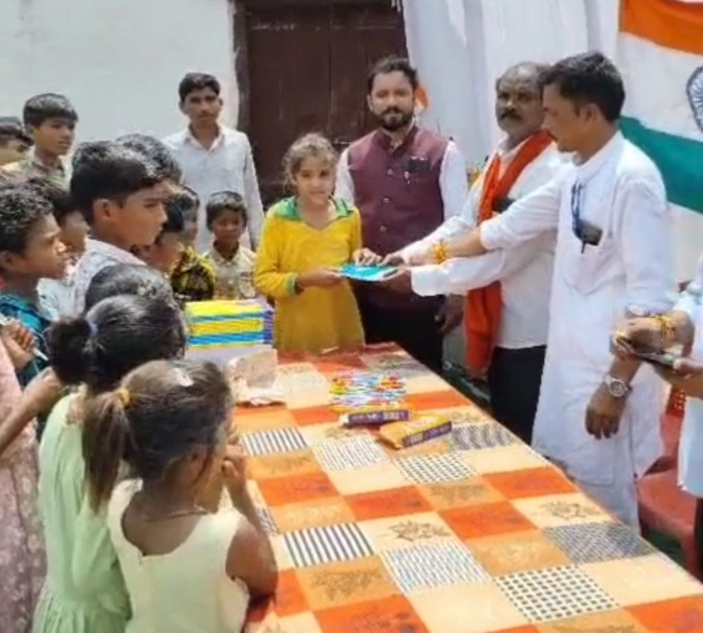 गया तत्पश्चात भारत माता एवं शहीदों के छायाचित्र की पूजा करके माल्यार्पण किया एवं अनेको बच्चों को पेन कॉपी वितरित कर उनको उज्जवल भविष्य की शुभकामना दी और ग्राम वाशियो को सम्बोधित किया!