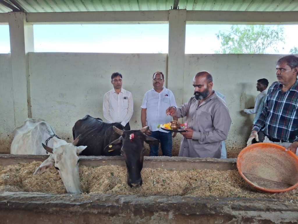 आज नंदनी गौ शाला मे श्री कृष्ण जन्माष्टमी पर पशु पालन विभाग से श्री डाक्टर राजेन्द्र शर्मा जी सी.एम.बडोदिया जी डाक्टर आंकाक्षा तिवारी जी आर.पी.मीना जी ग्राम पंचायत रंढाल सरपंच महोदय खुशी लाल आठनेर वरिष्ठ रामेश्वर मीना जी कृपाराम फोजदार अनिल साहू जी दिनेश मीणा जी दमयंती बाई दीपक गौर जी रोहित गौर जी अतुल वर्मा जी आदि लोगों ने भगवान कृष्ण जन्माष्टमी पर गौ माता की पूजा की और गौ माता को गुड़ और कैला खिलाकर पूजा आरती की और डाक्टर राजेन्द्र शर्मा जी ने गौ शाला का निरीक्षण किया जय गौमाता जय श्री कृष्णा